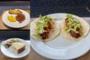 Breakfast: Corned beef hash, eggs and toast. Lunch: Spicy tuna salad sandwich on Heidelberg French peasant bread. Salad with lettuce mix, cucumber, tomato, carrot, celery, green pepper, red onion, and chipotle ranch dressing (20 grams, 93 cal). Dinner: American-style beef soft taco. With 3.0 oz. taco seasoned ground beef, cheese, tomato, hot taco sauce, and lettuce. |