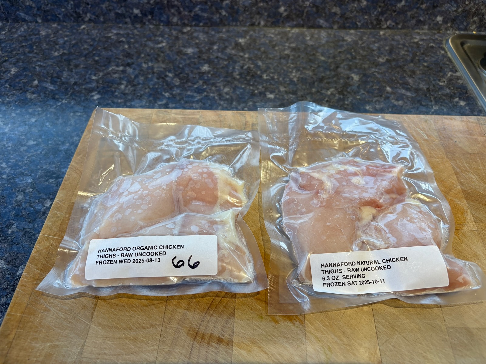 Used 12.9 oz. boneless, skinless chicken thighs (previously frozen).