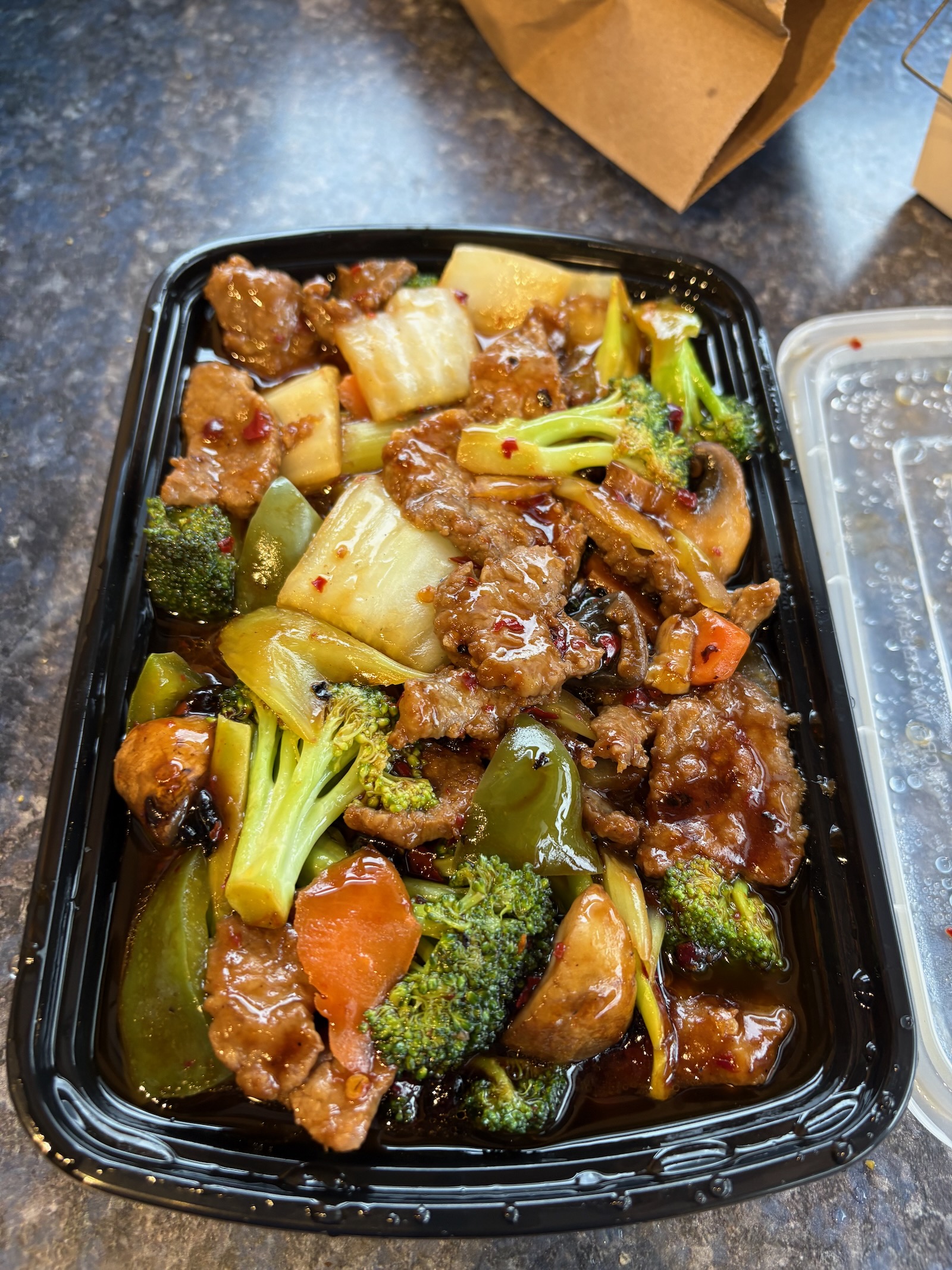 This is just take-out Chinese; the recipe is just to keep track of when I eat it. I usually get it from China City in Sidney, NY.
