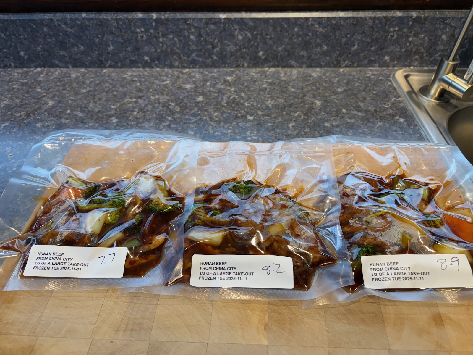 Vacuum sealed and frozen, it reheats well.