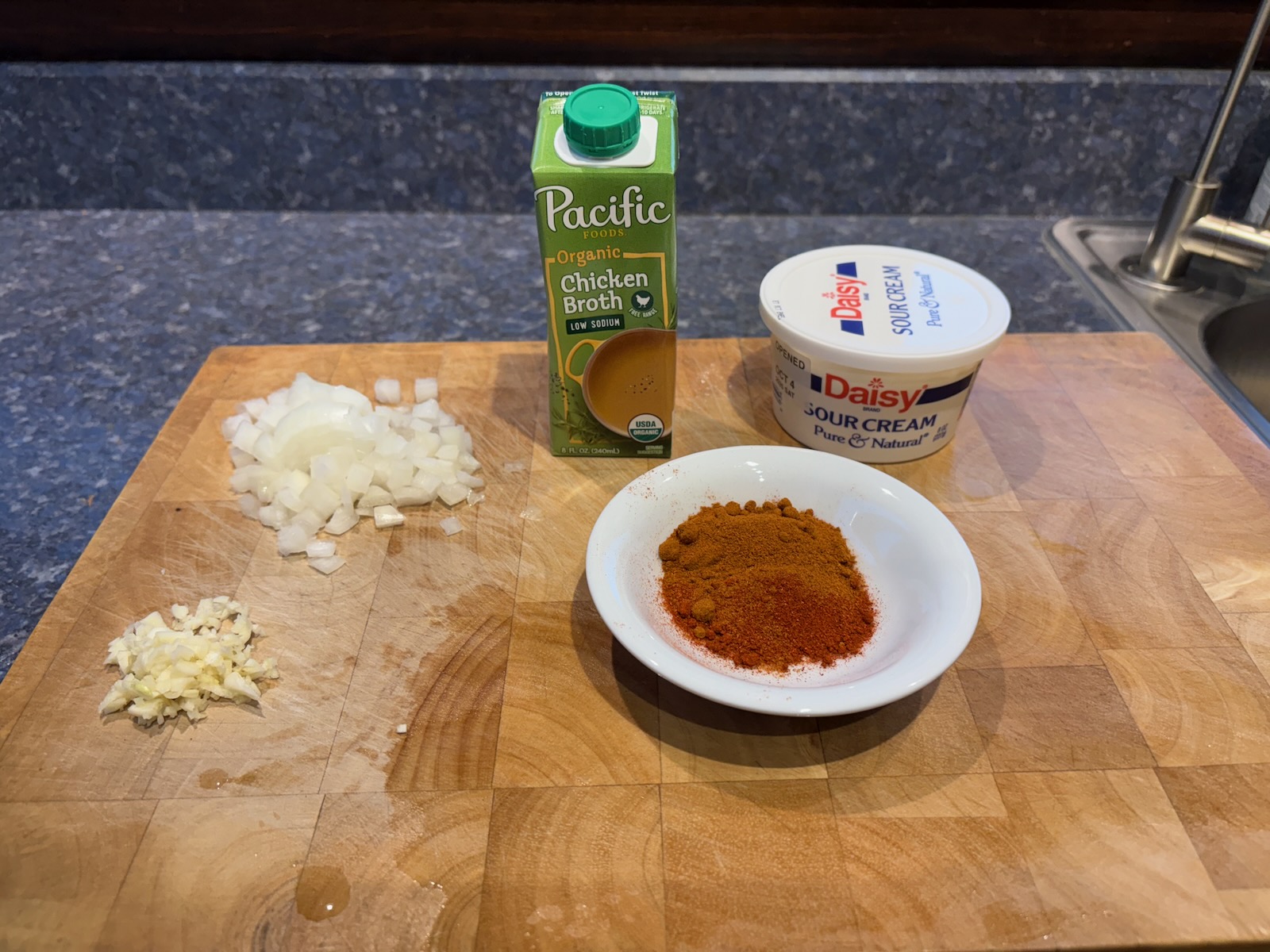 This is a minor update to Chicken paprika #4, consolidating the updates. Makes 4 servings.