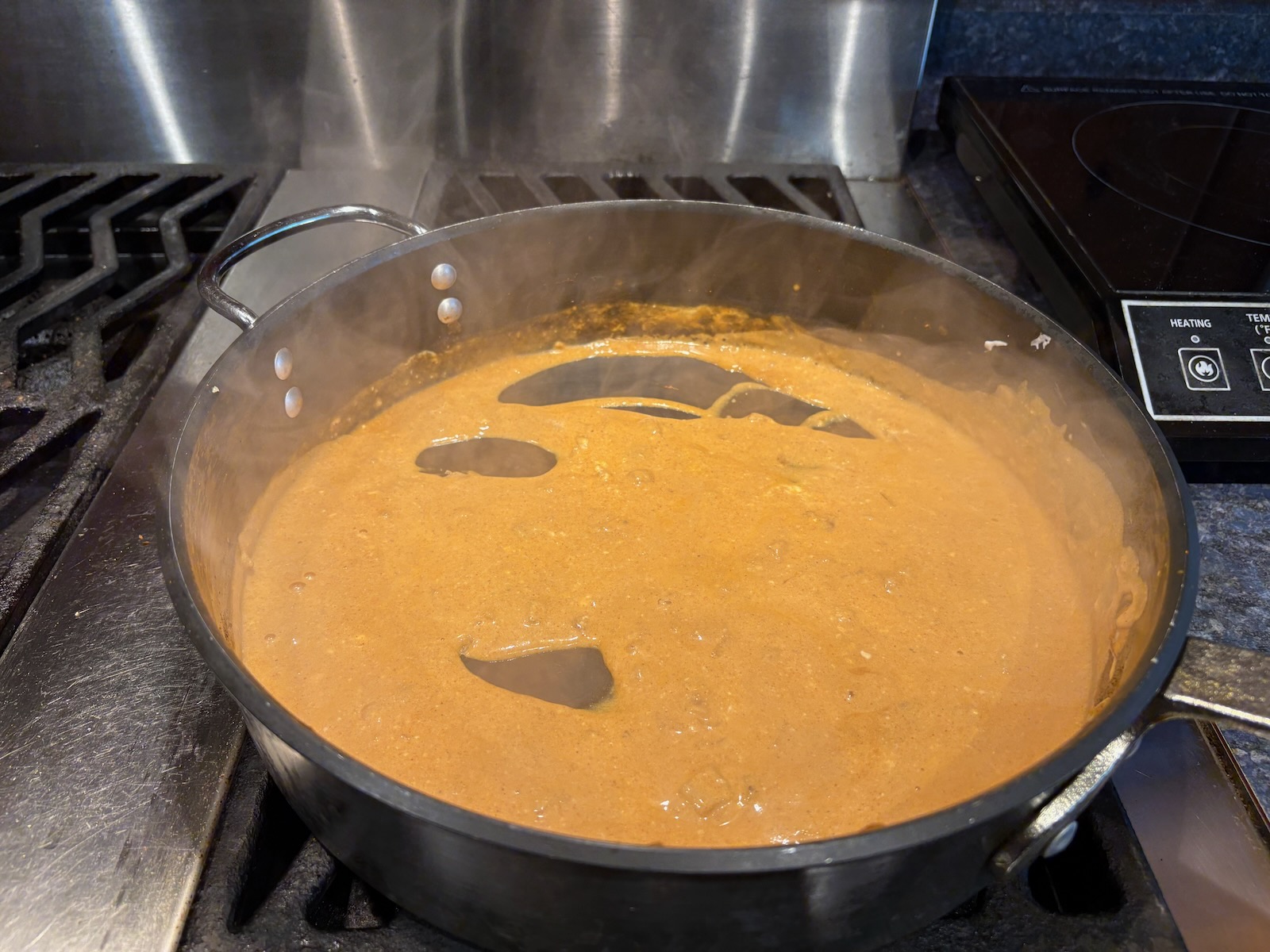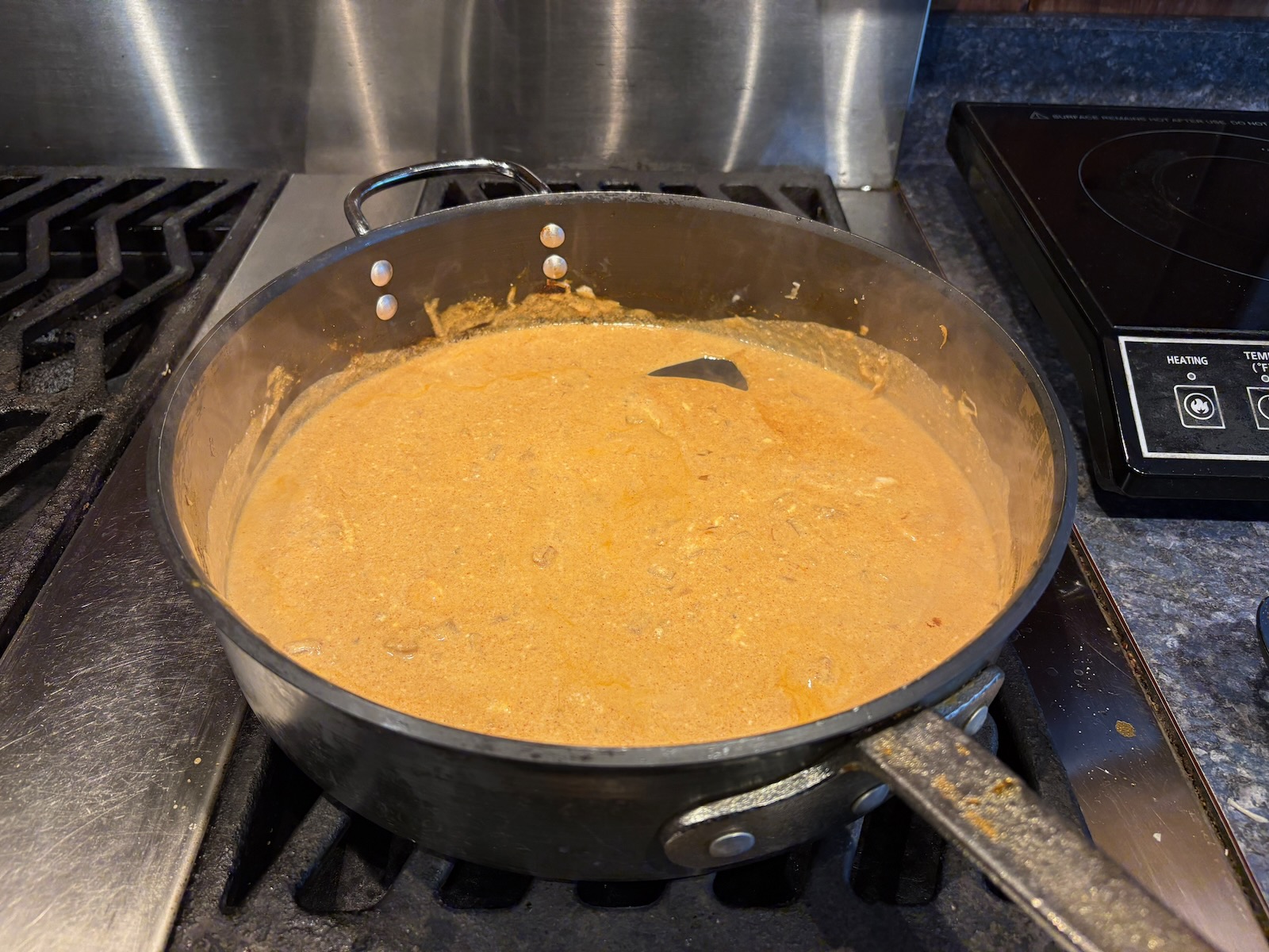 Transfer to a sauté pan to cook for a few minutes to get the sauce back to the right consistency. Add a little water if necessary.