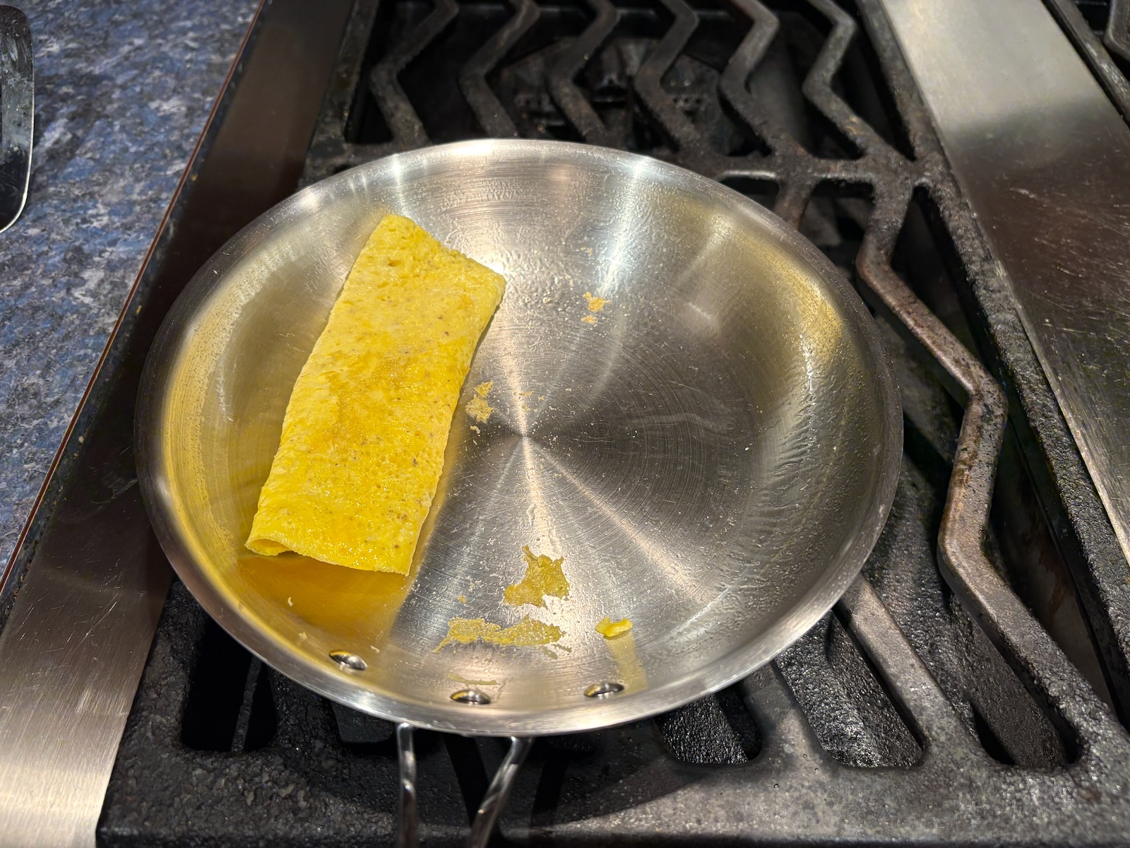 Fold into burrito shape. I fold mine flatter instead of fully round to make cooking it easier.