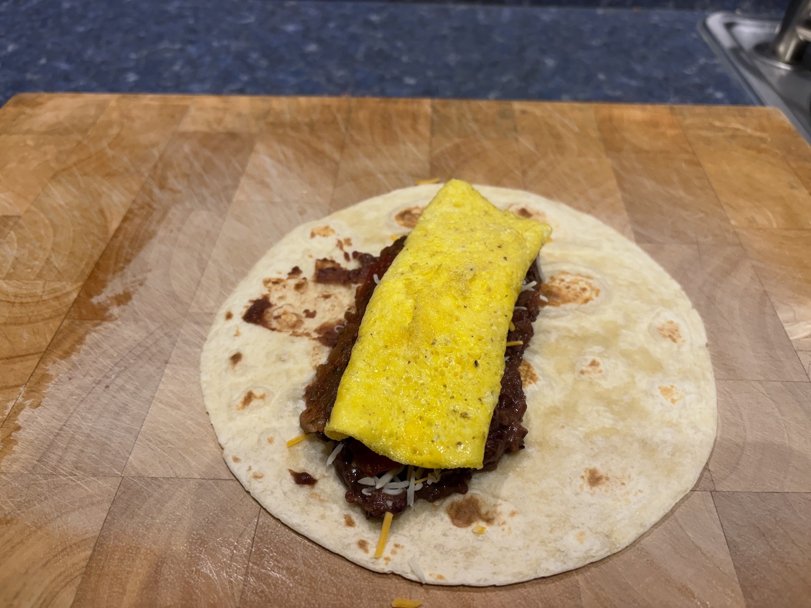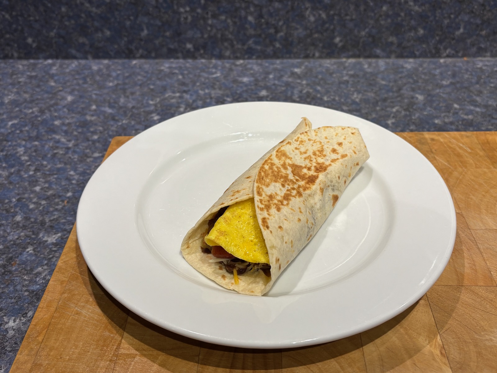 This is an updated version of Refried black bean, egg and cheese breakfast burrito.