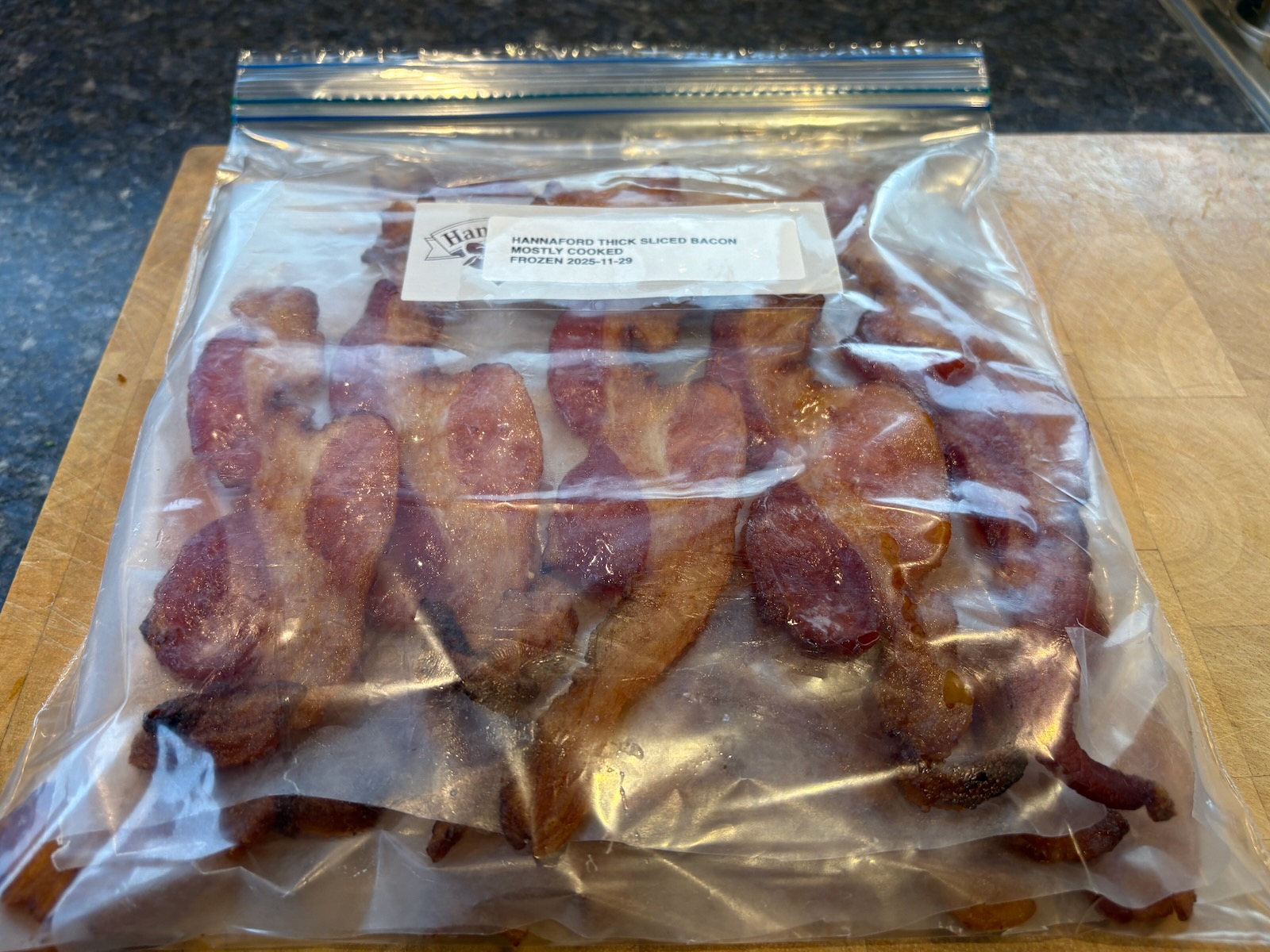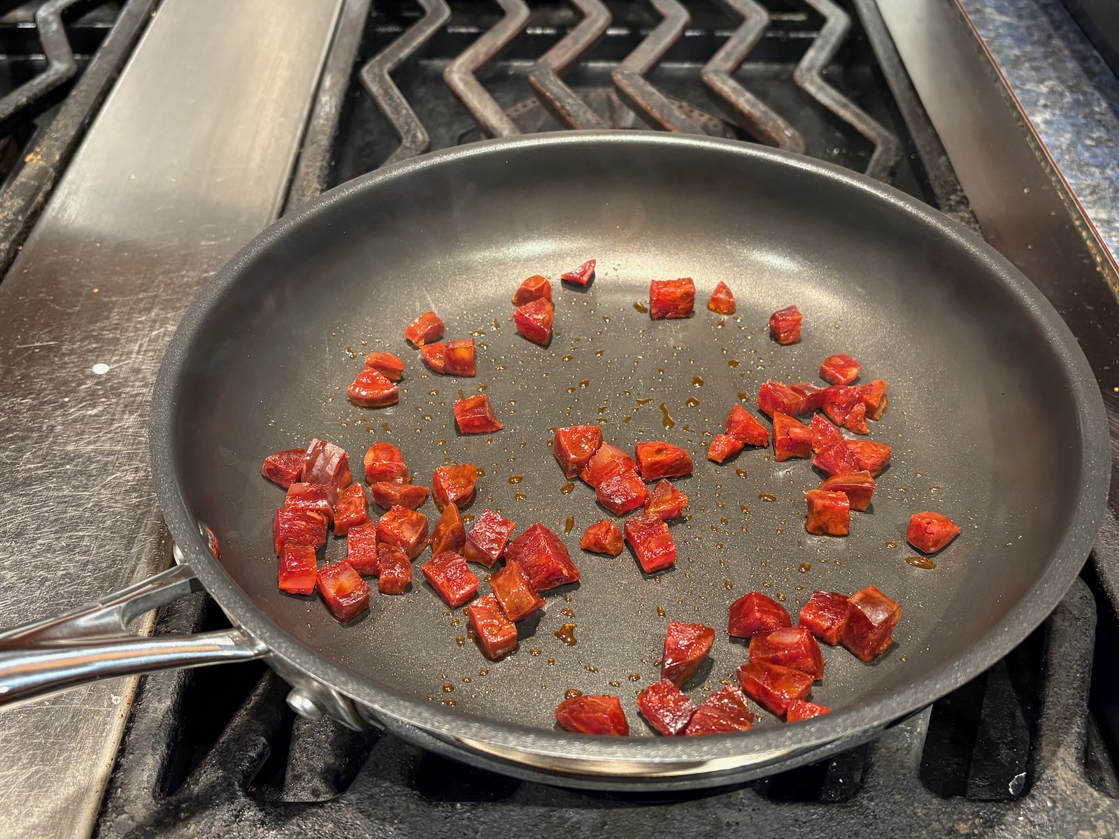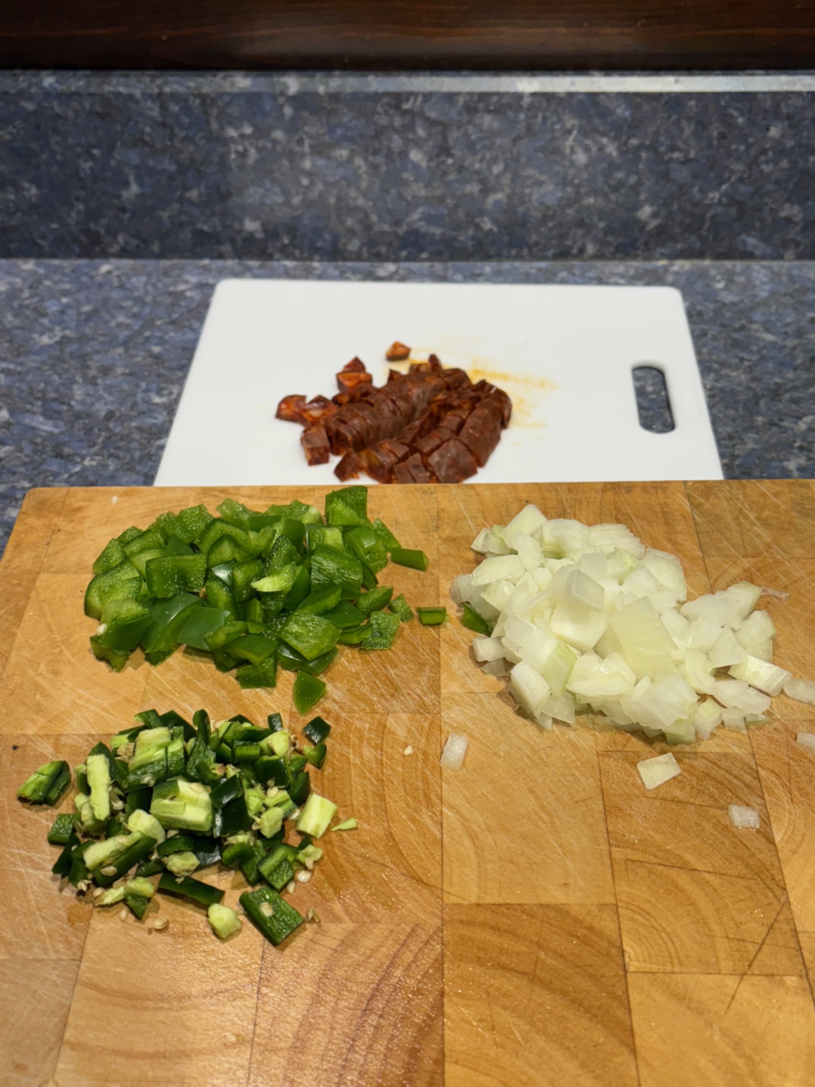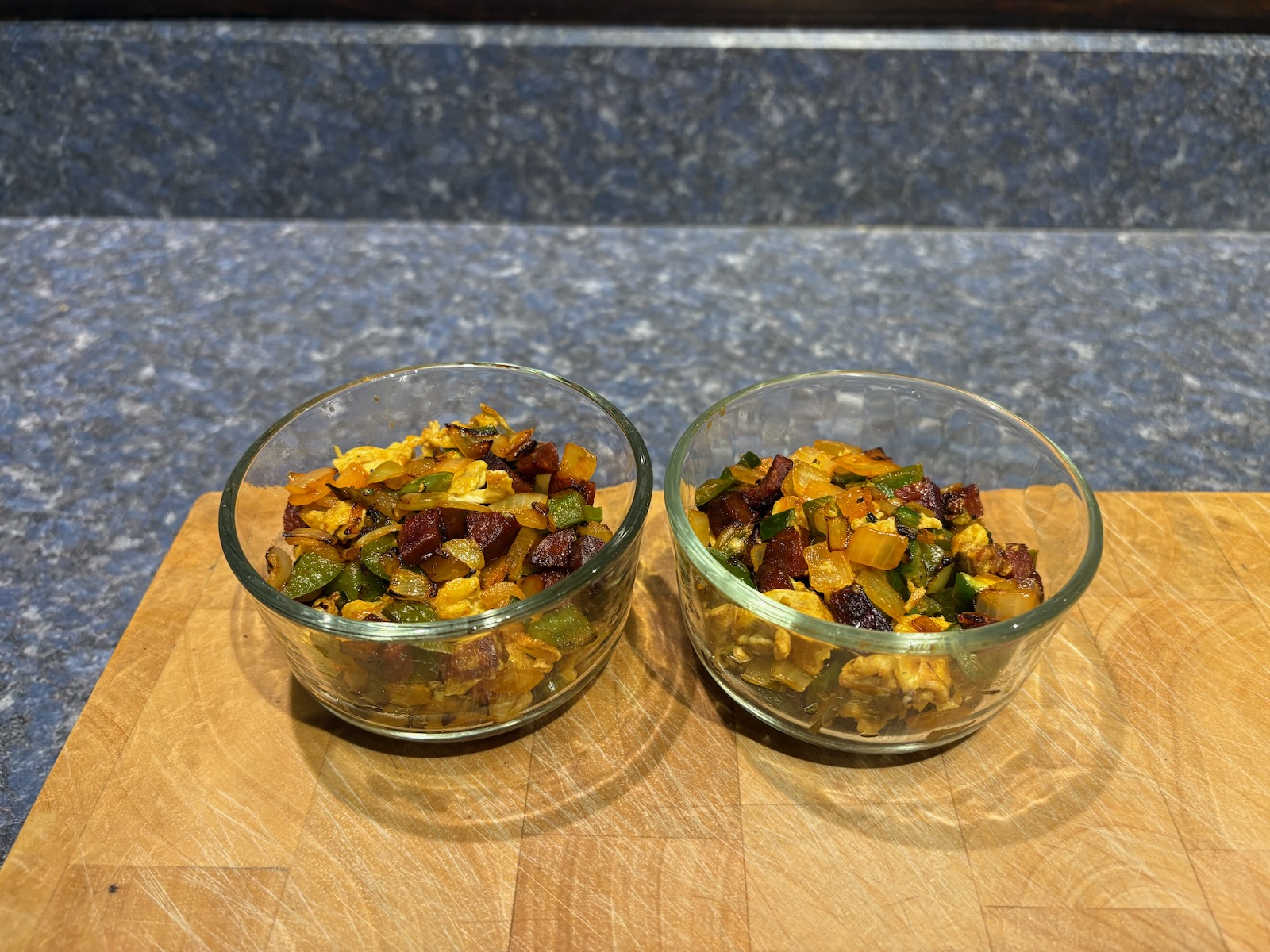 Made the filling for chorizo breakfast burrito with chorizo, onion, green pepper, jalapeño, and egg for breakfast Wednesday. This one has the better imported Palacios Spanish chorizo. Froze the serving for next Friday. I have omelette filling frozen from last week.