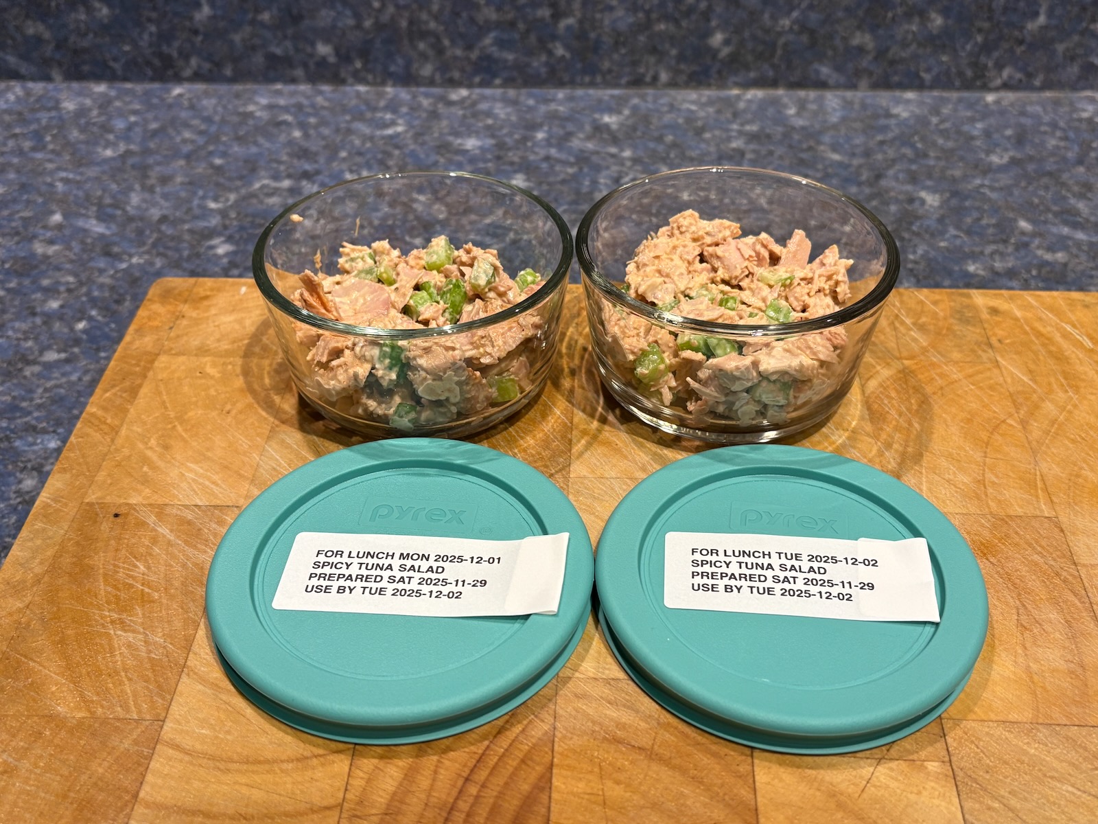 Prepped 2 servings of Spicy tuna salad sandwich.