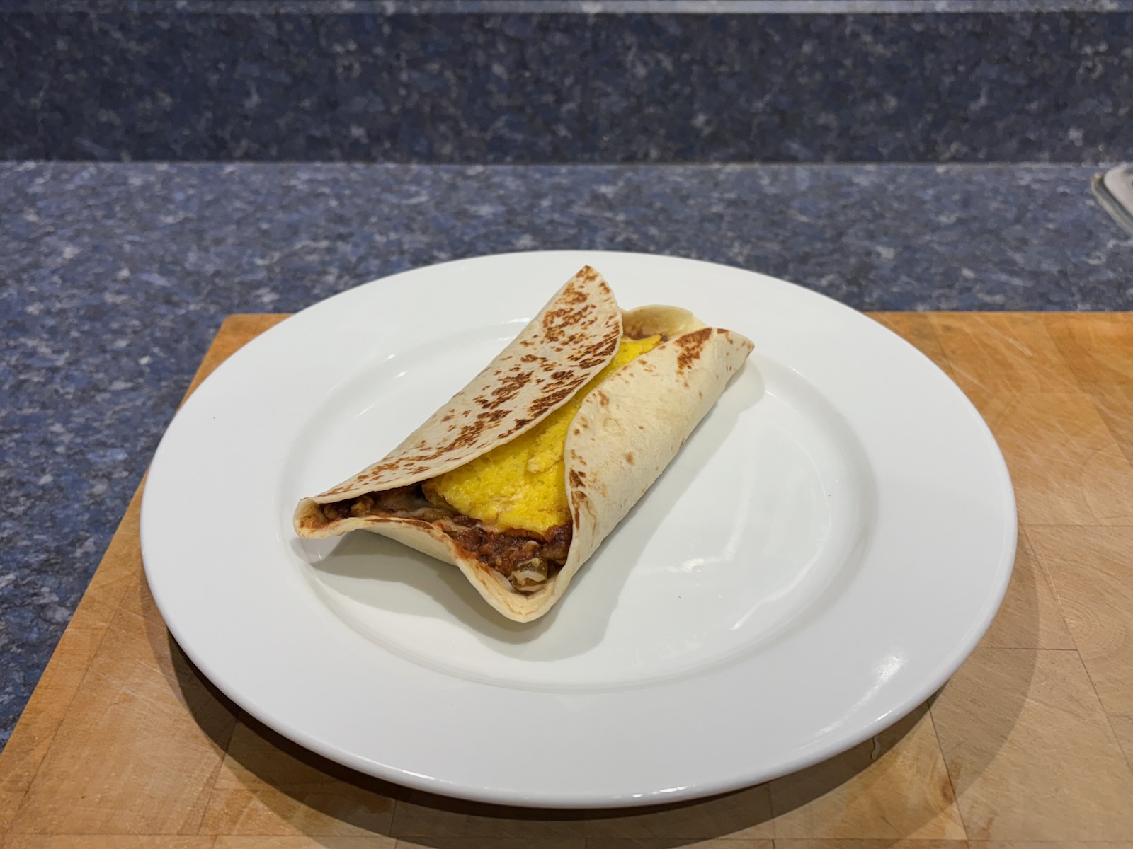 Breakfast: Refried black bean, egg, and cheese breakfast burrito #2.