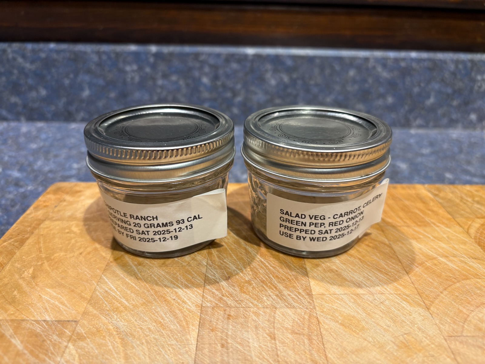 Prepped 2 servings of chipotle ranch salad dressing, 20 grams, 93 calories each.
