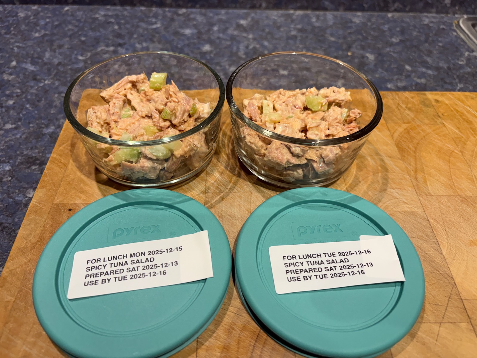 Prepped 2 servings of Spicy tuna salad sandwich.