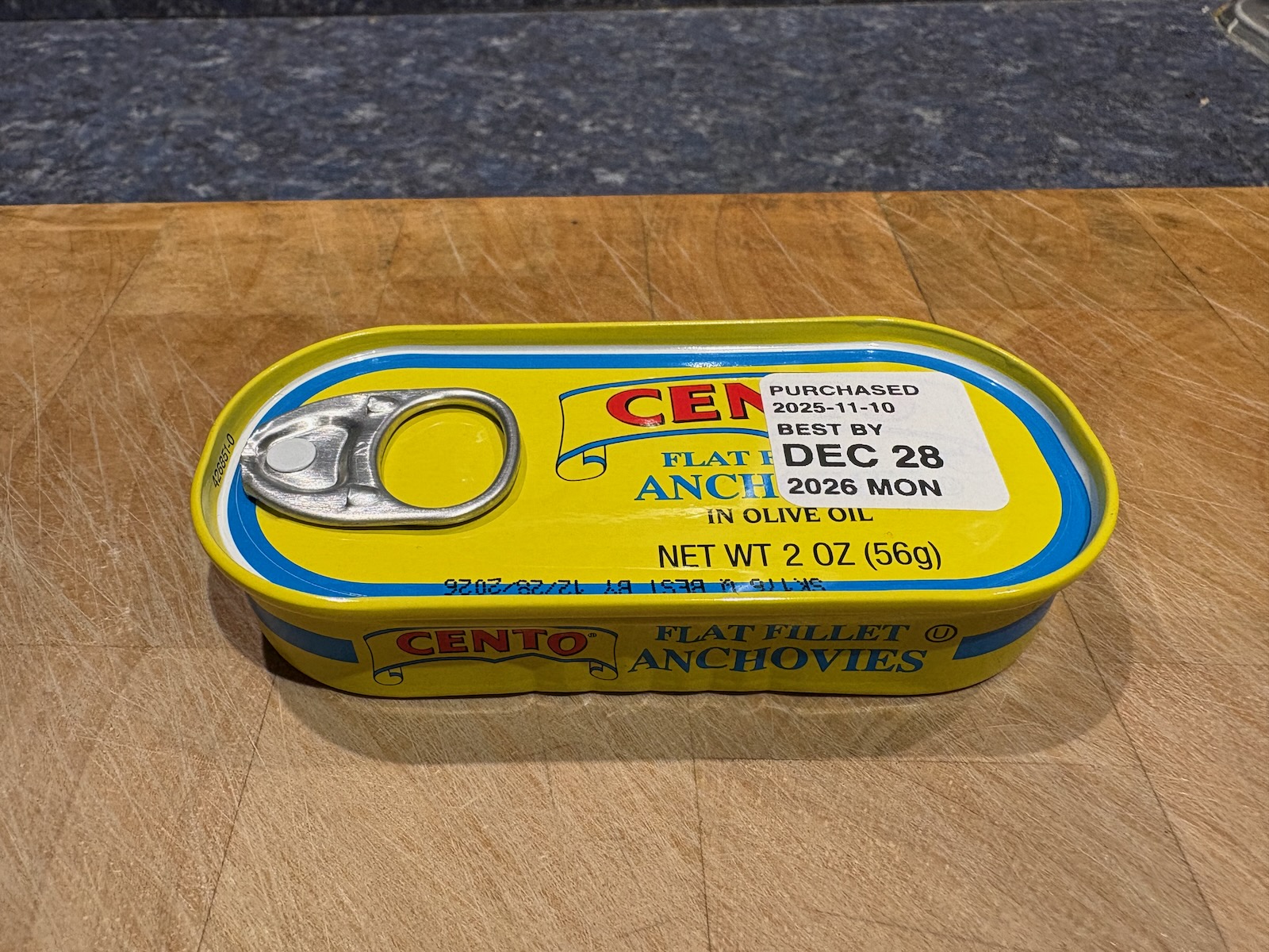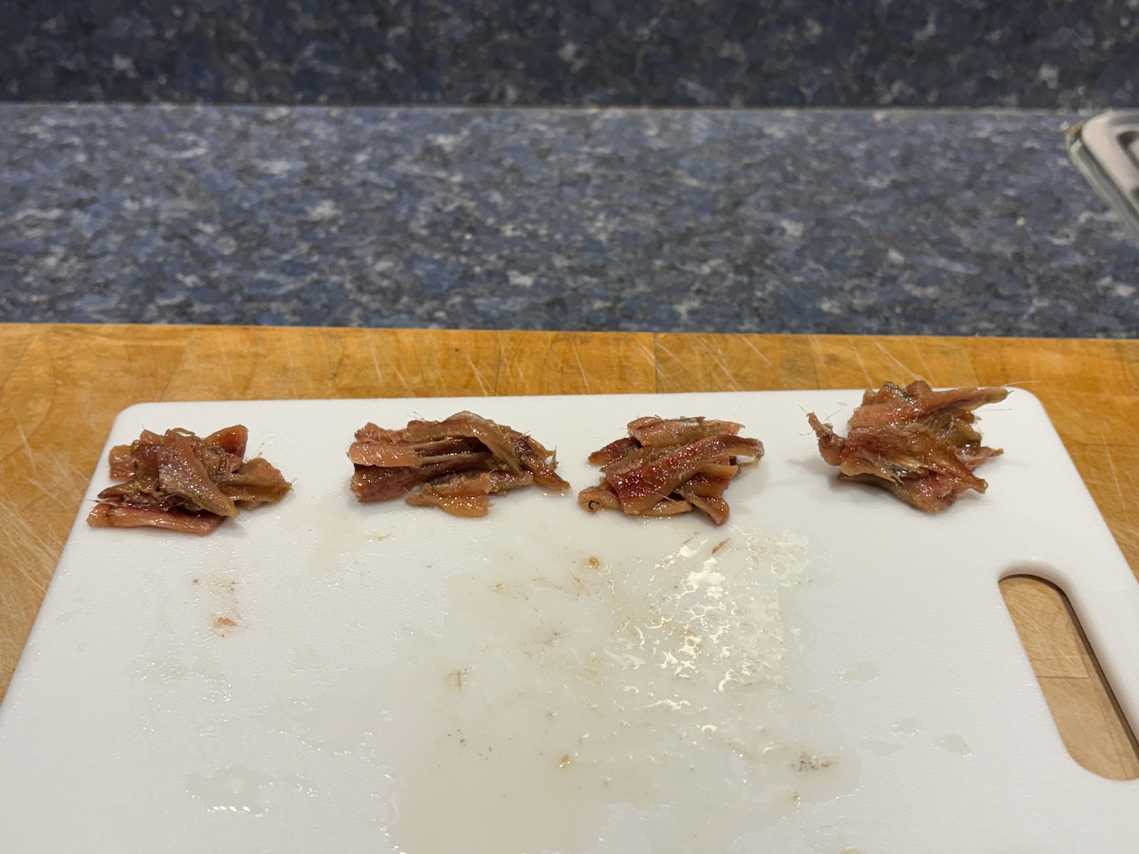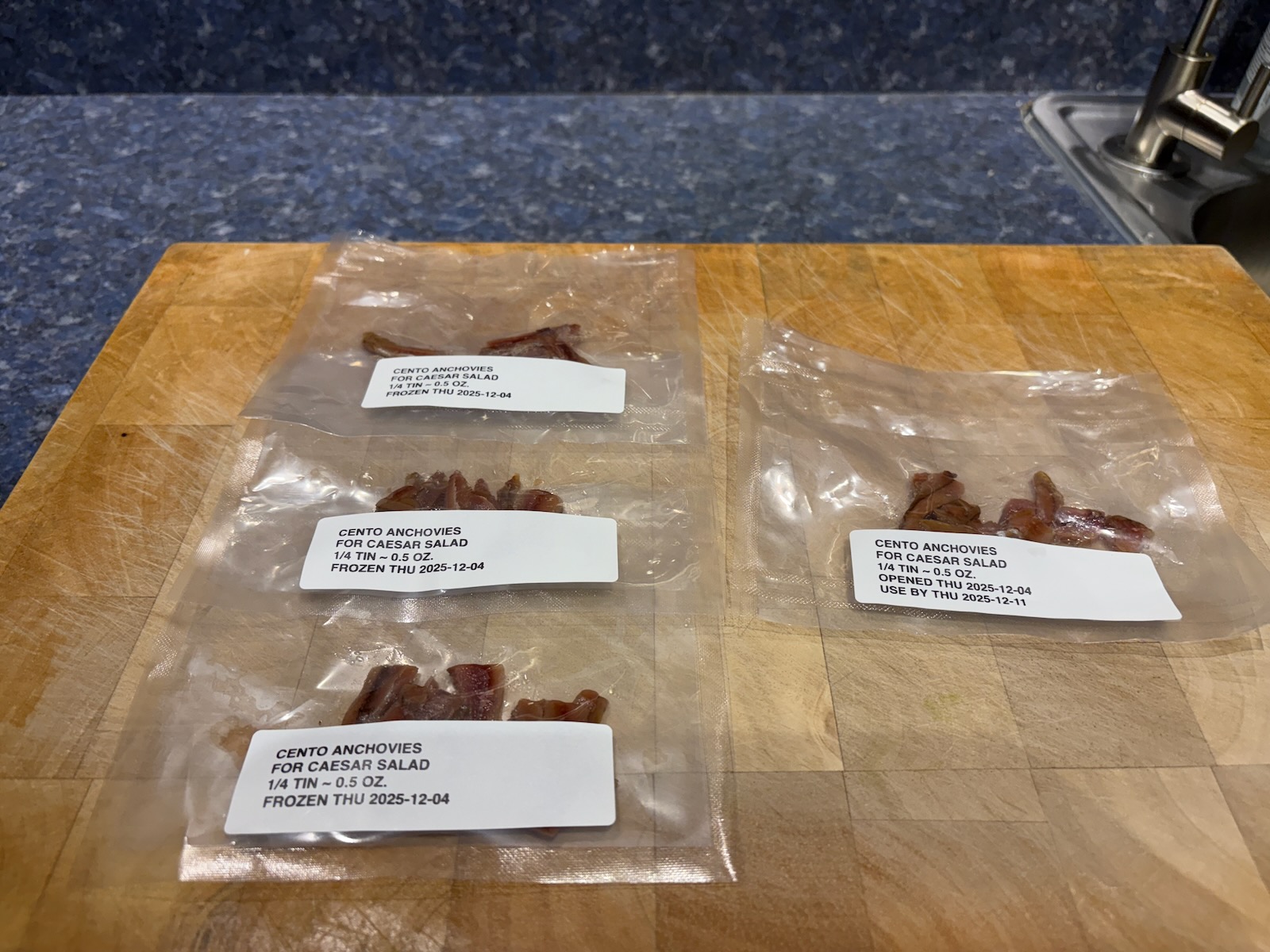 Divided, vacuum sealed, and froze anchovies for Caesar salad.