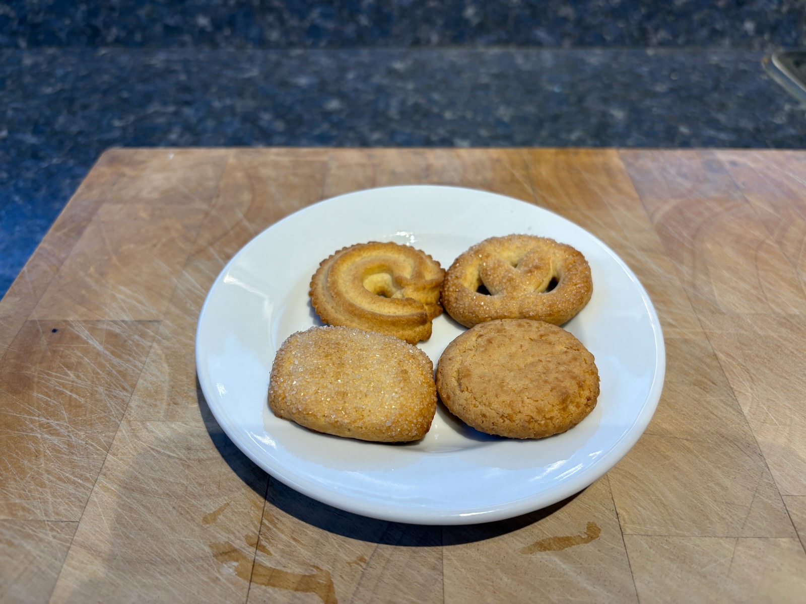 Snack: 4 Danish butter cookies.