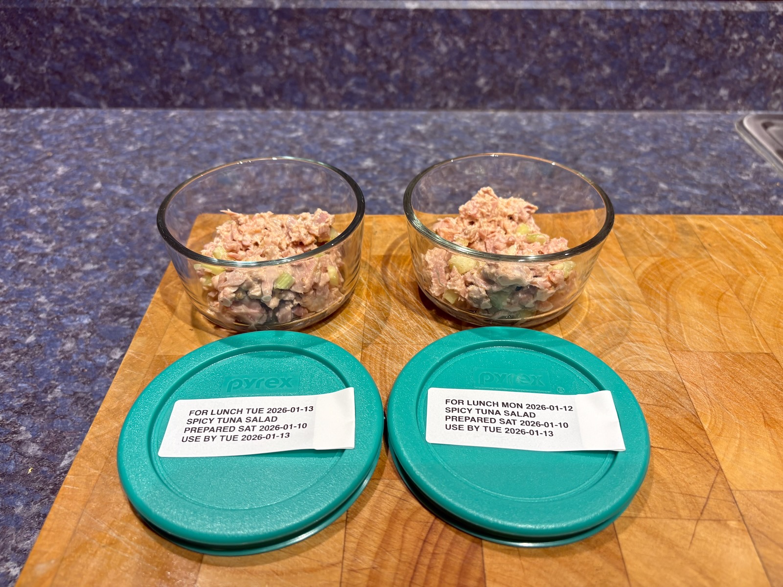 Prepped 2 servings of Spicy tuna salad sandwich.