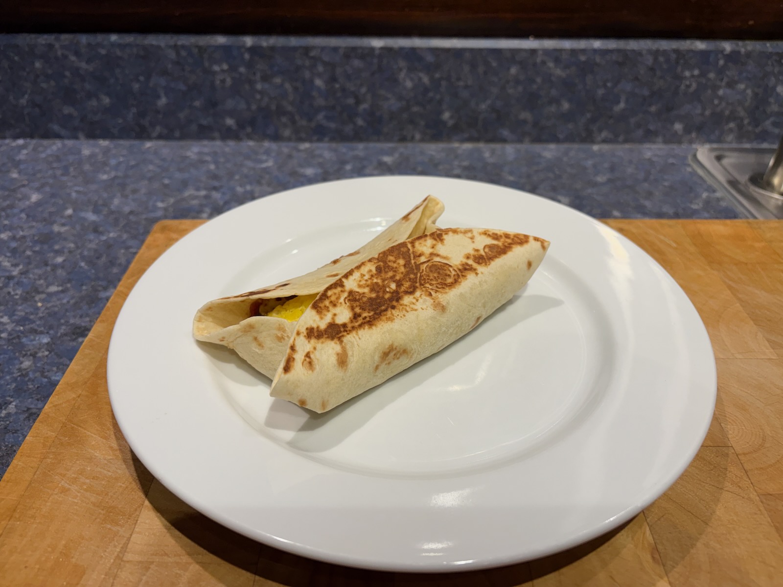 Breakfast: Refried black bean, egg, and cheese breakfast burrito #2.