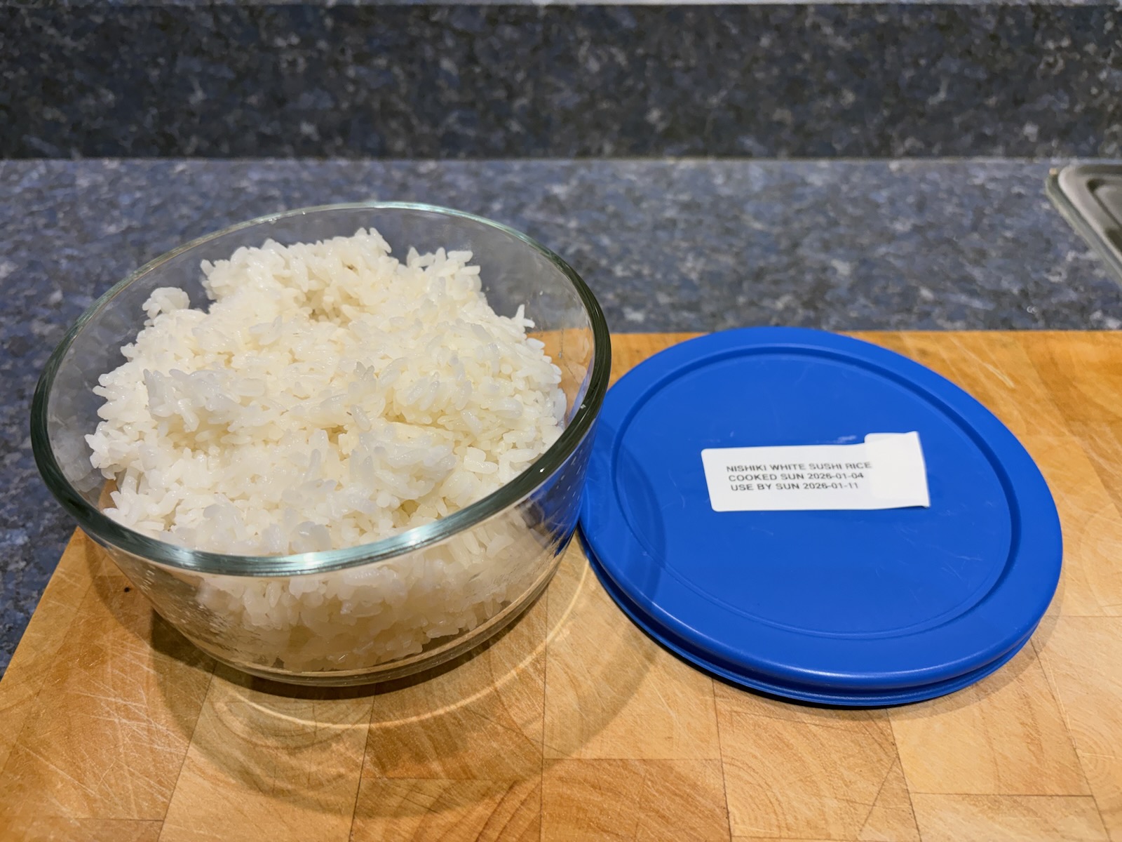 Cooked 1 1/2 cups of Nishiki white sushi rice and refrigerated for the week.