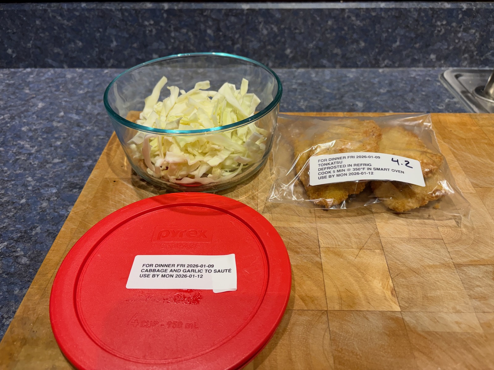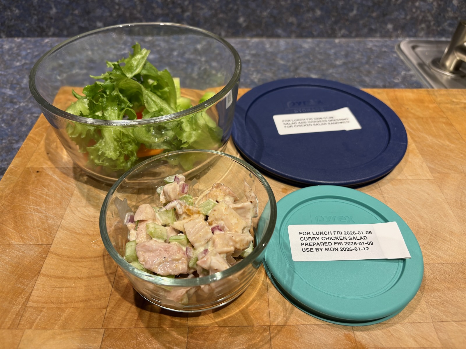 Prepped for lunch and dinner.