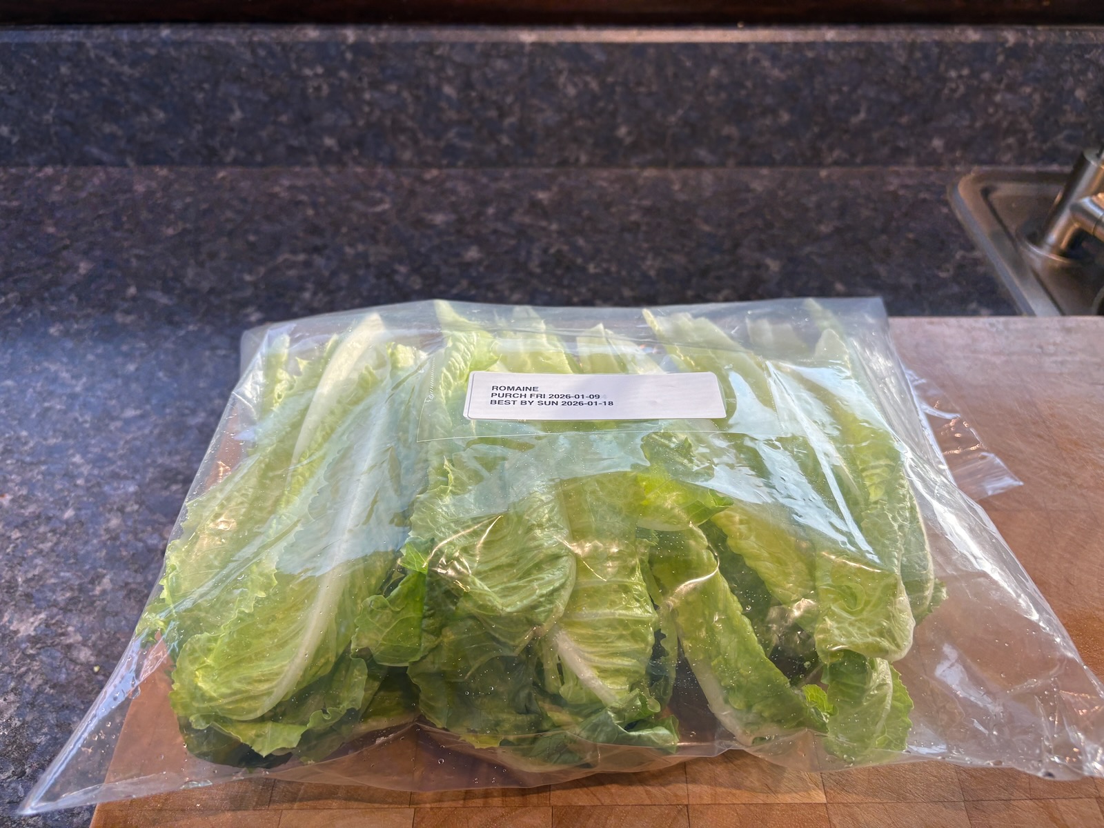 Prepped and refrigerated Romaine lettuce. Good until Sunday 2026-01-18.
