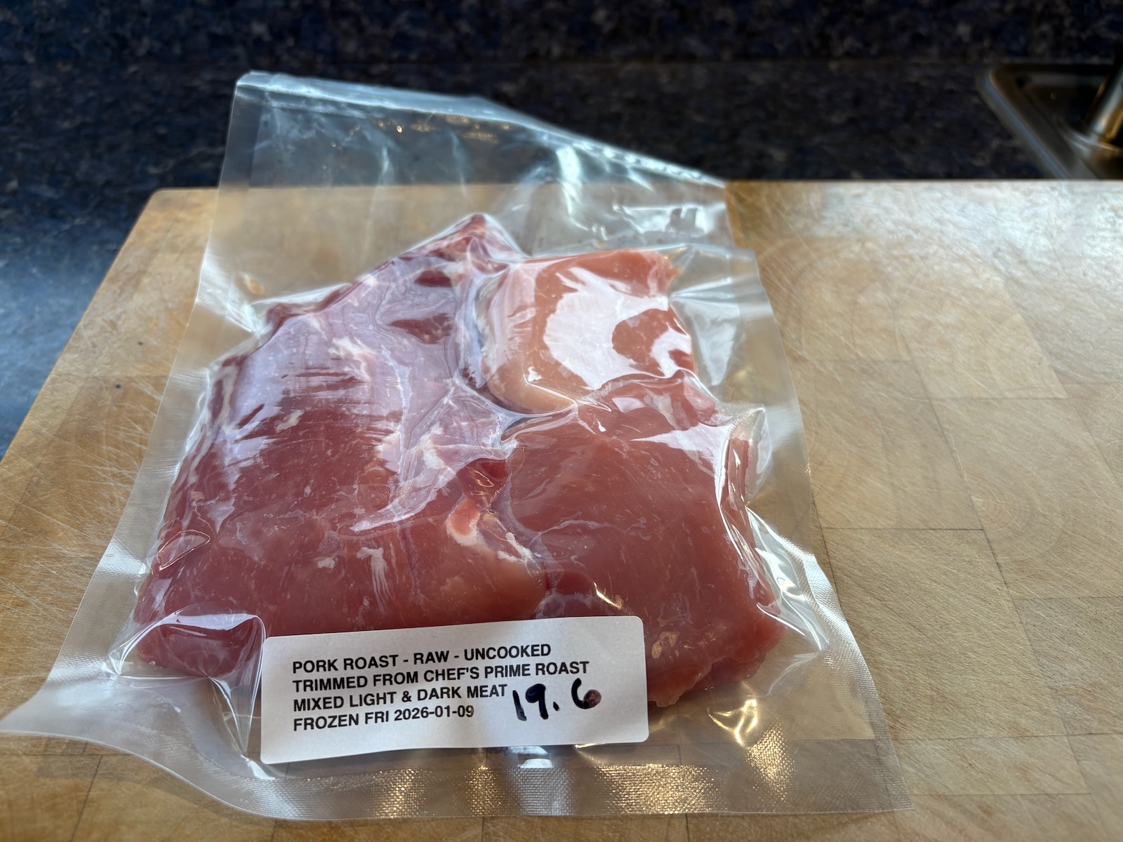 Started with a 2.29 lb. chef's prime pork roast. I often use this cut, but also it's current very inexpensive, $1.69/lb.!