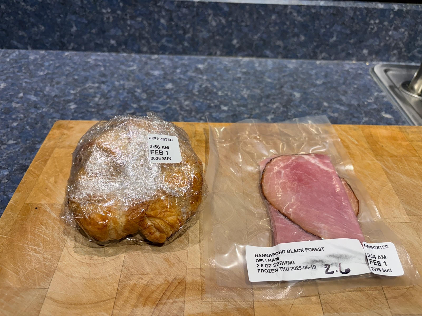 Lunch: Ham and cheese croissant with 2.6 oz. ham and potato chips.