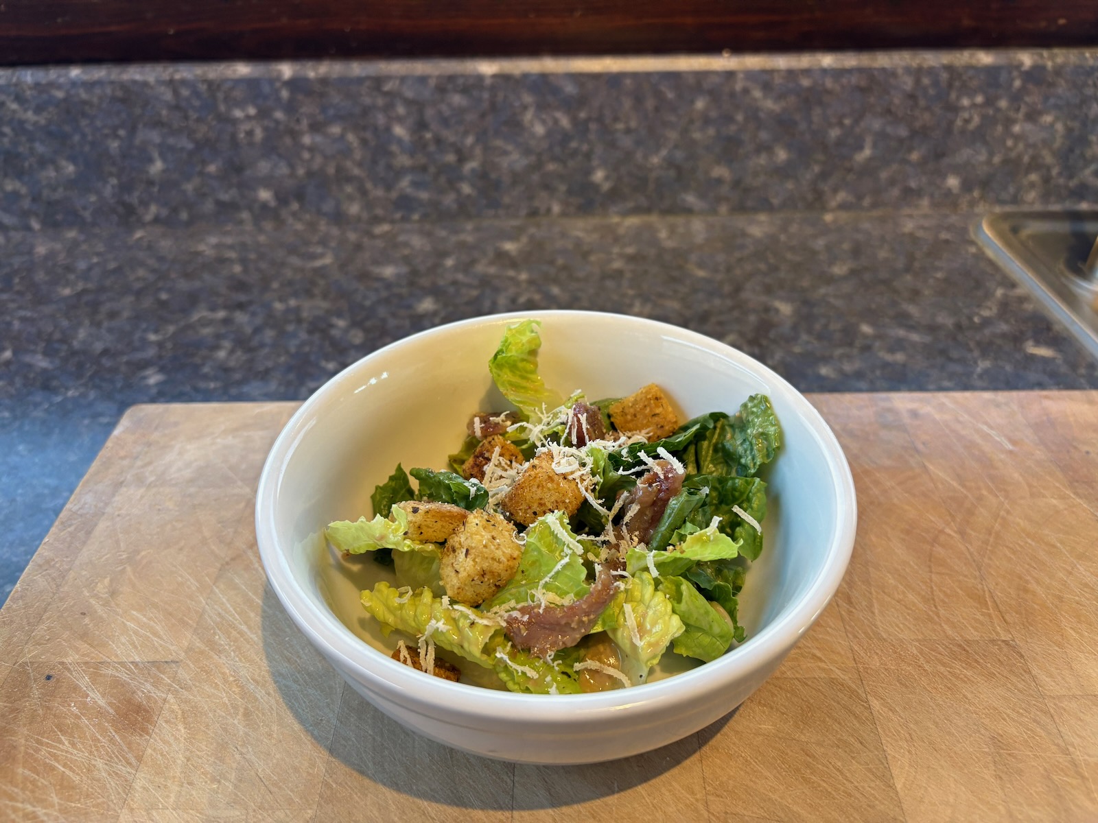 Pre-dinner: A side Caesar salad. A glass of Bota Box malbec.