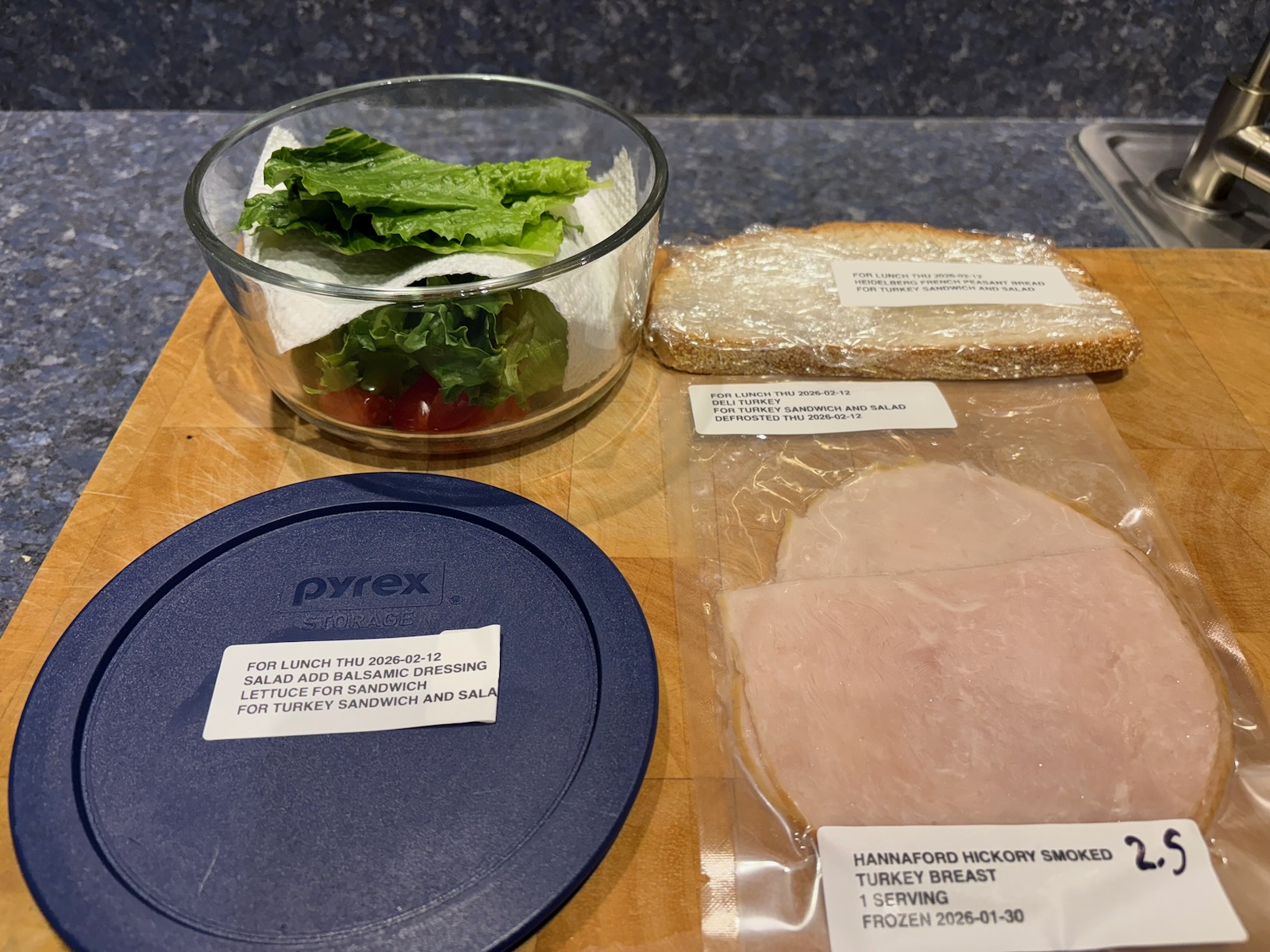 Prepped for lunch and dinner.