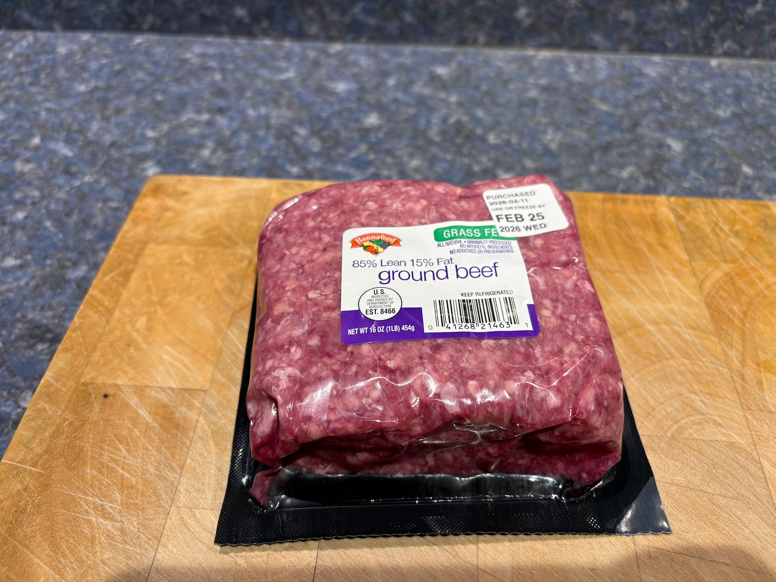 Vacuum sealed and froze 4 packages of 4.0 oz. of 85/15 grass-fed ground beef, raw, for burgers or Crushed hamburger.