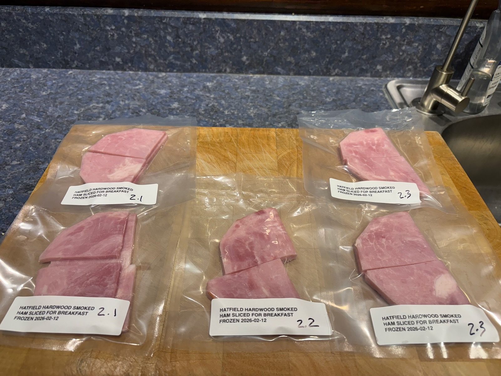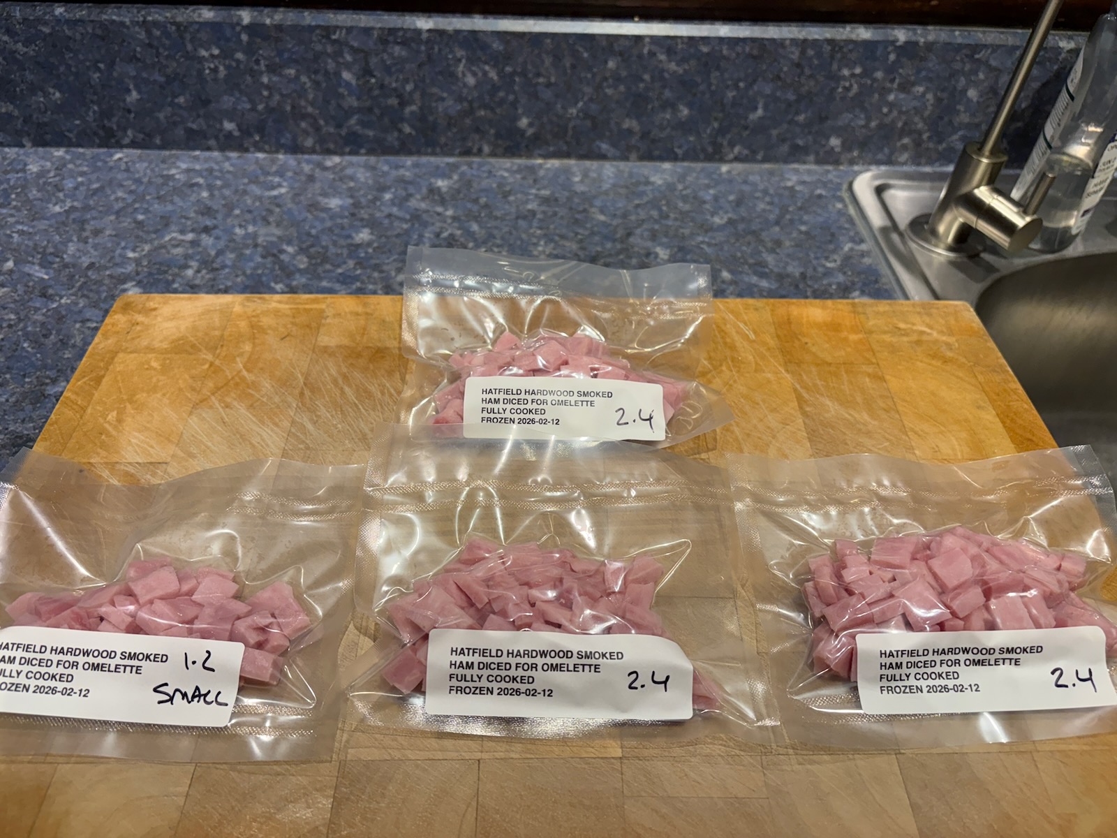 Vacuum sealed and froze sliced ham for breakfast and diced ham for omelette.
