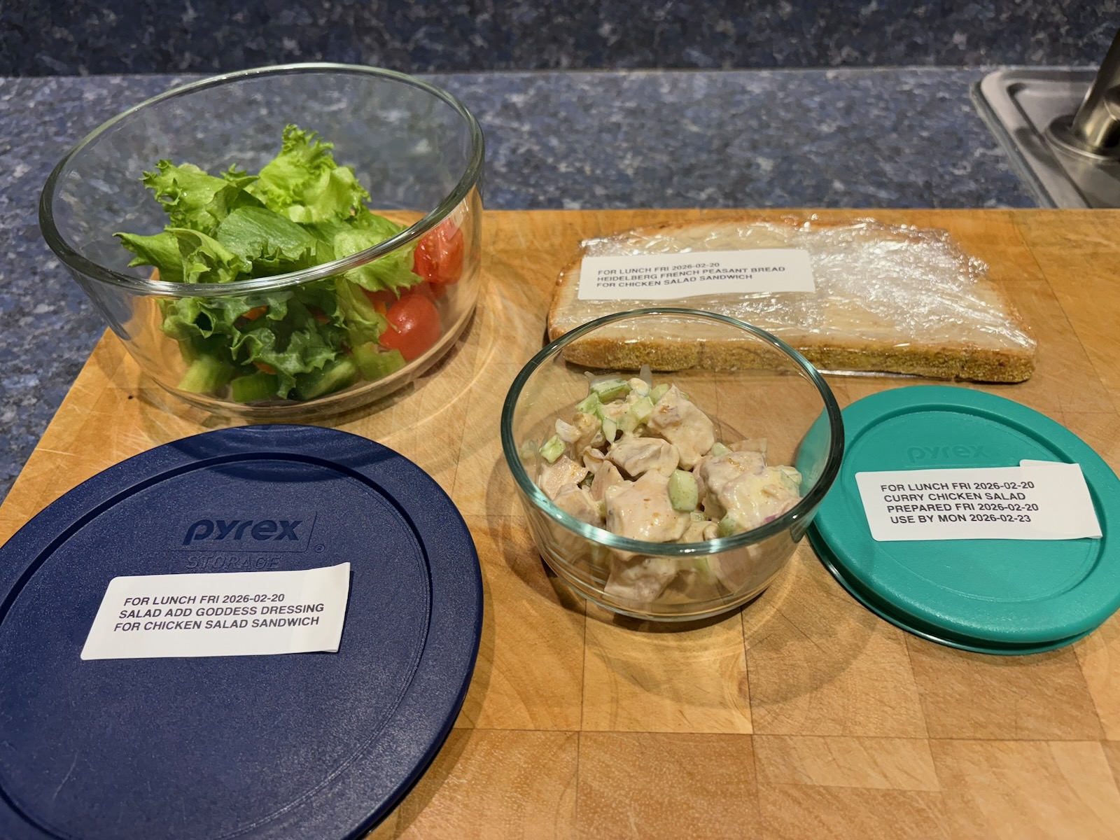Prepped for lunch and dinner.