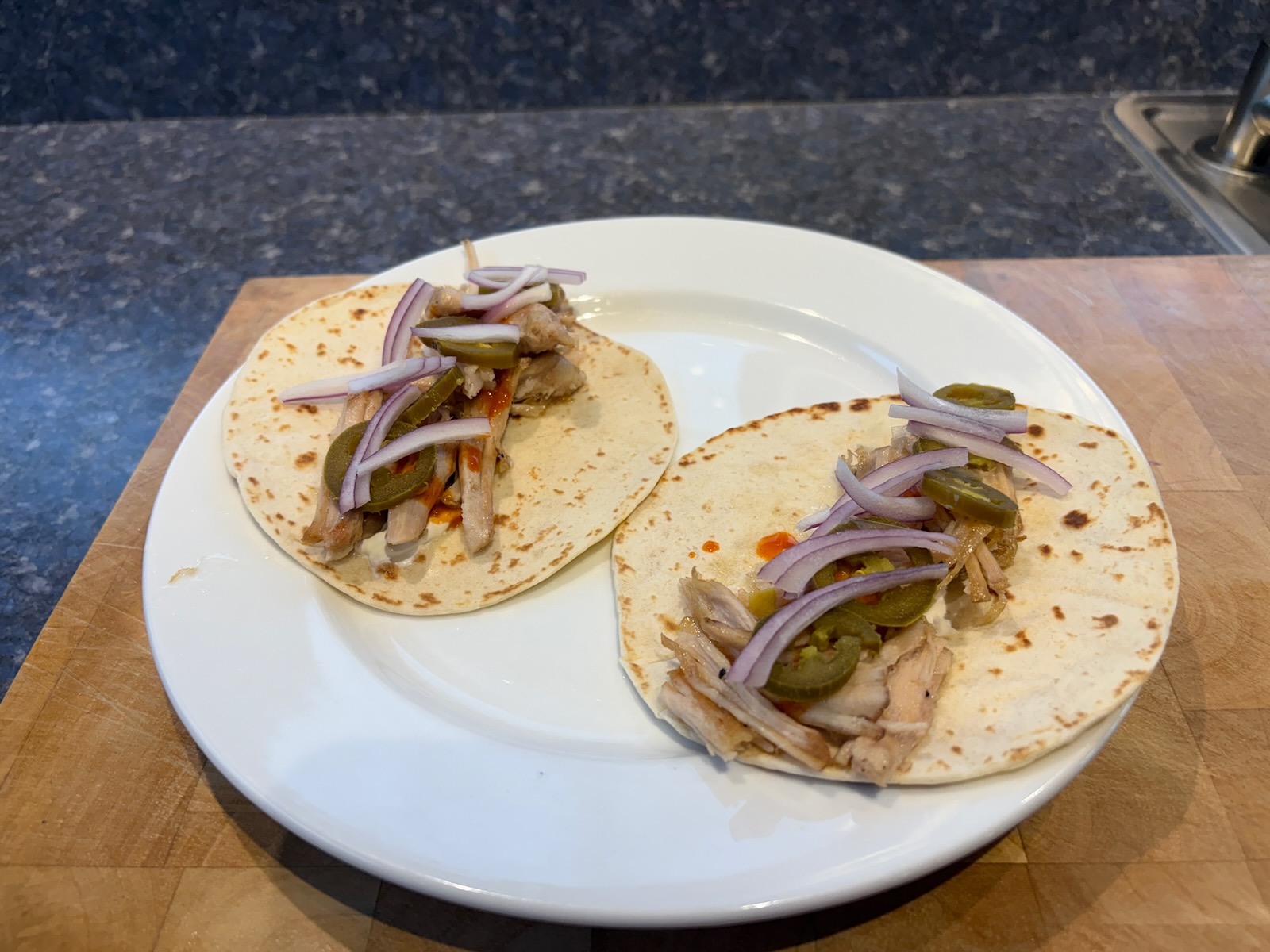 Dinner: Pork carnitas tacos, with 2.8 oz. pork. Sauza hornitos tequila.