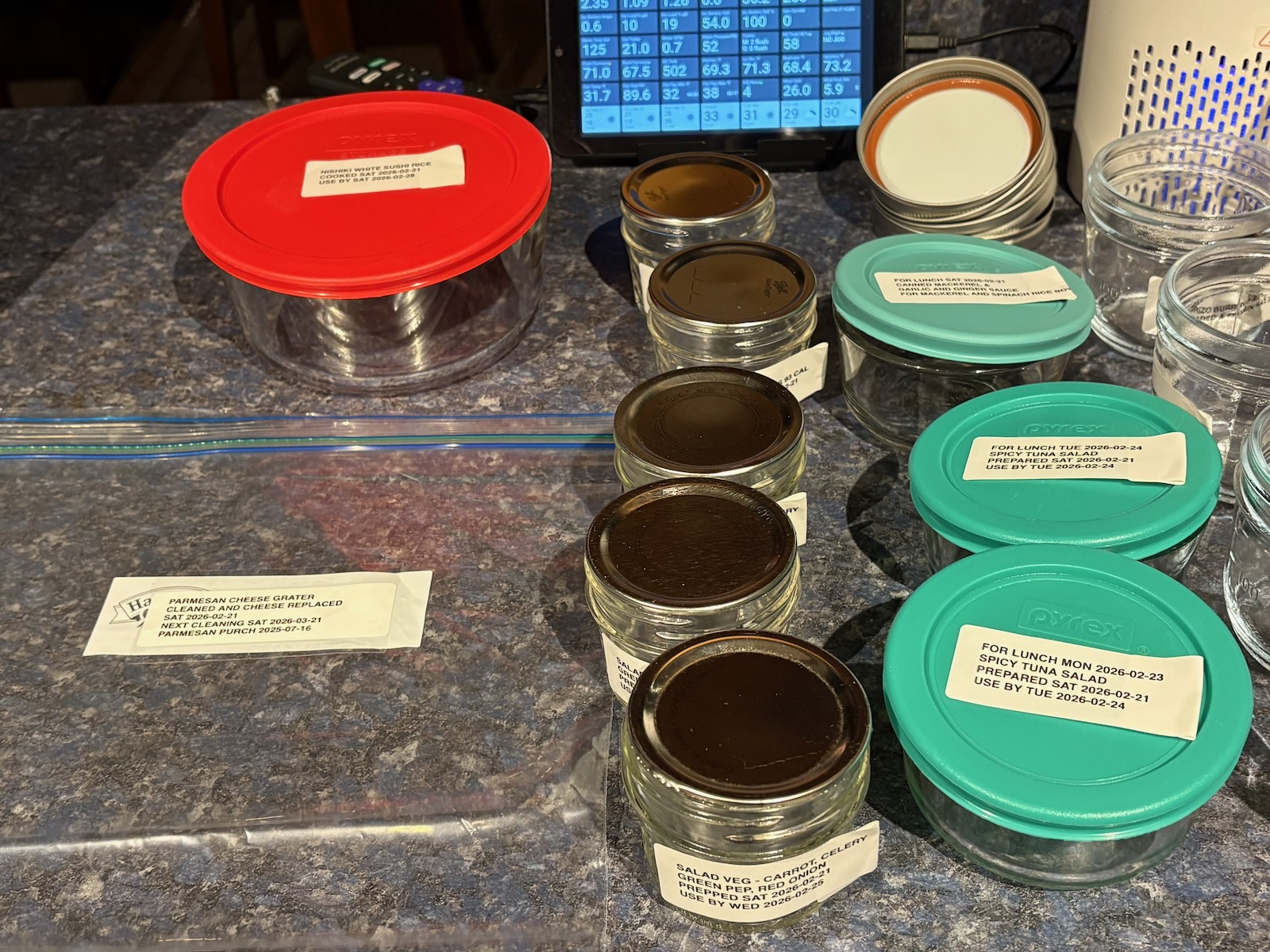 Containers ready for this week's prep: