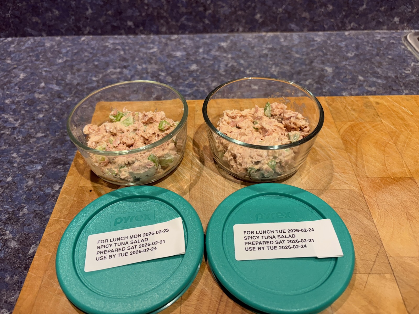 Prepped for lunch and dinner.