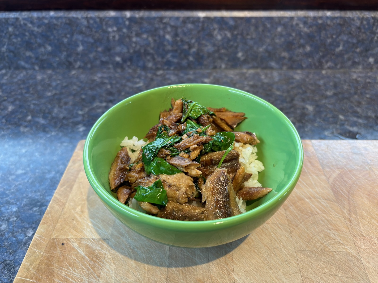 Lunch: Mackerel and spinach rice bowl #2.