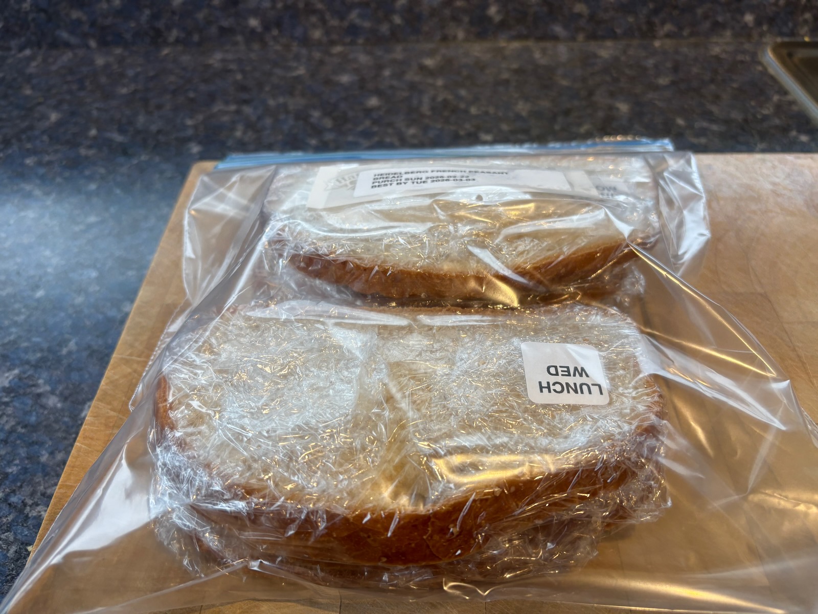 Separated out slices of Heidelberg French peasant bread for this week. Froze the remainder.
