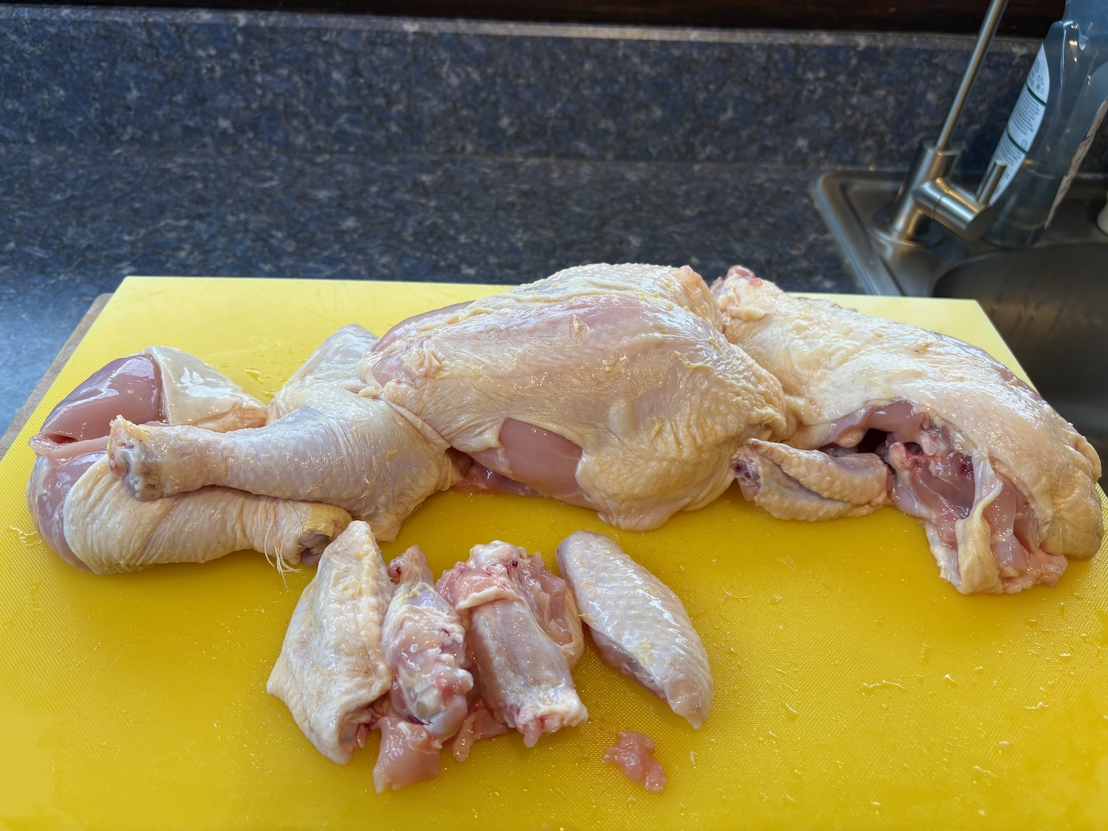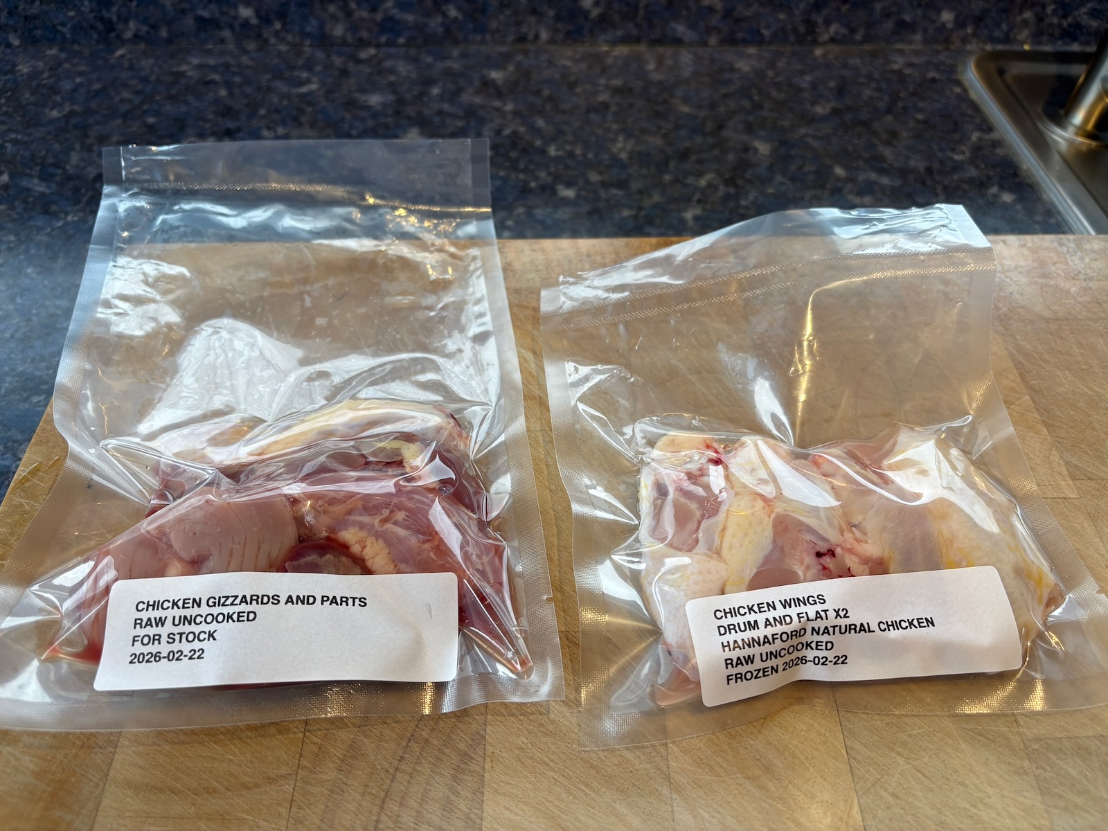 Separated out the gizzards and wing tips for stock. Separated the chicken wings, vacuum sealed, and froze for Buffalo chicken wings.