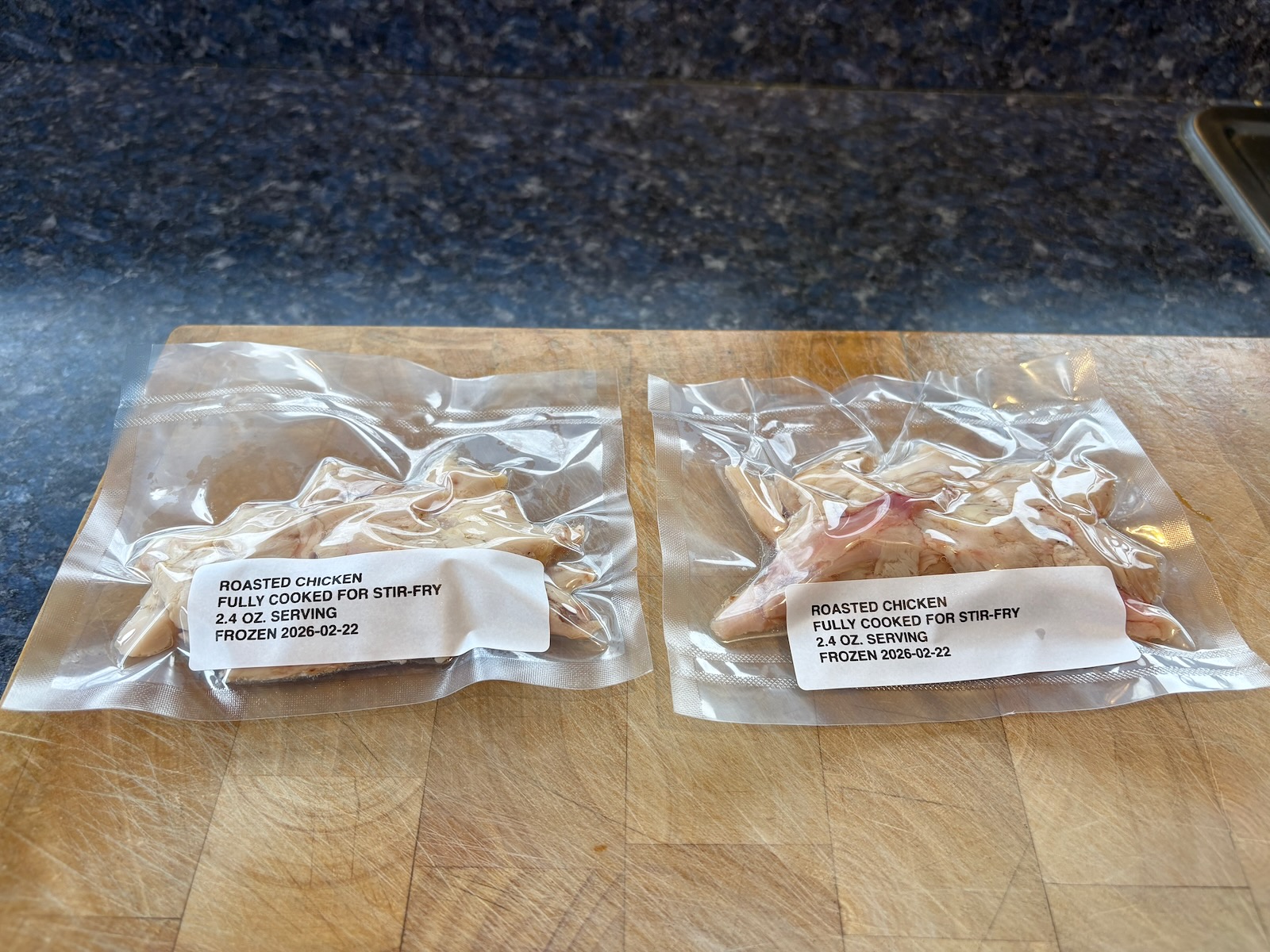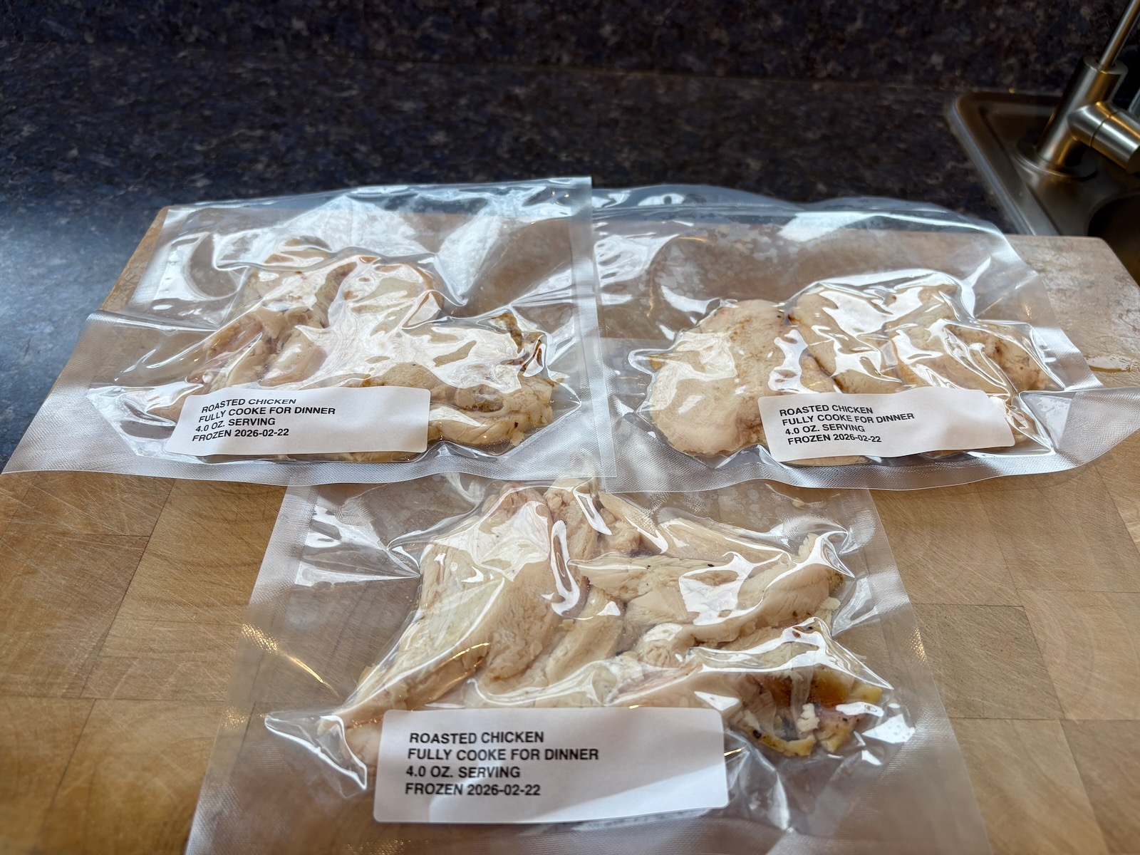 Made 3x of 12 oz. chicken stock for chicken soup and 3x packages of 1.0 oz. chicken for the soup, picked from the bones.