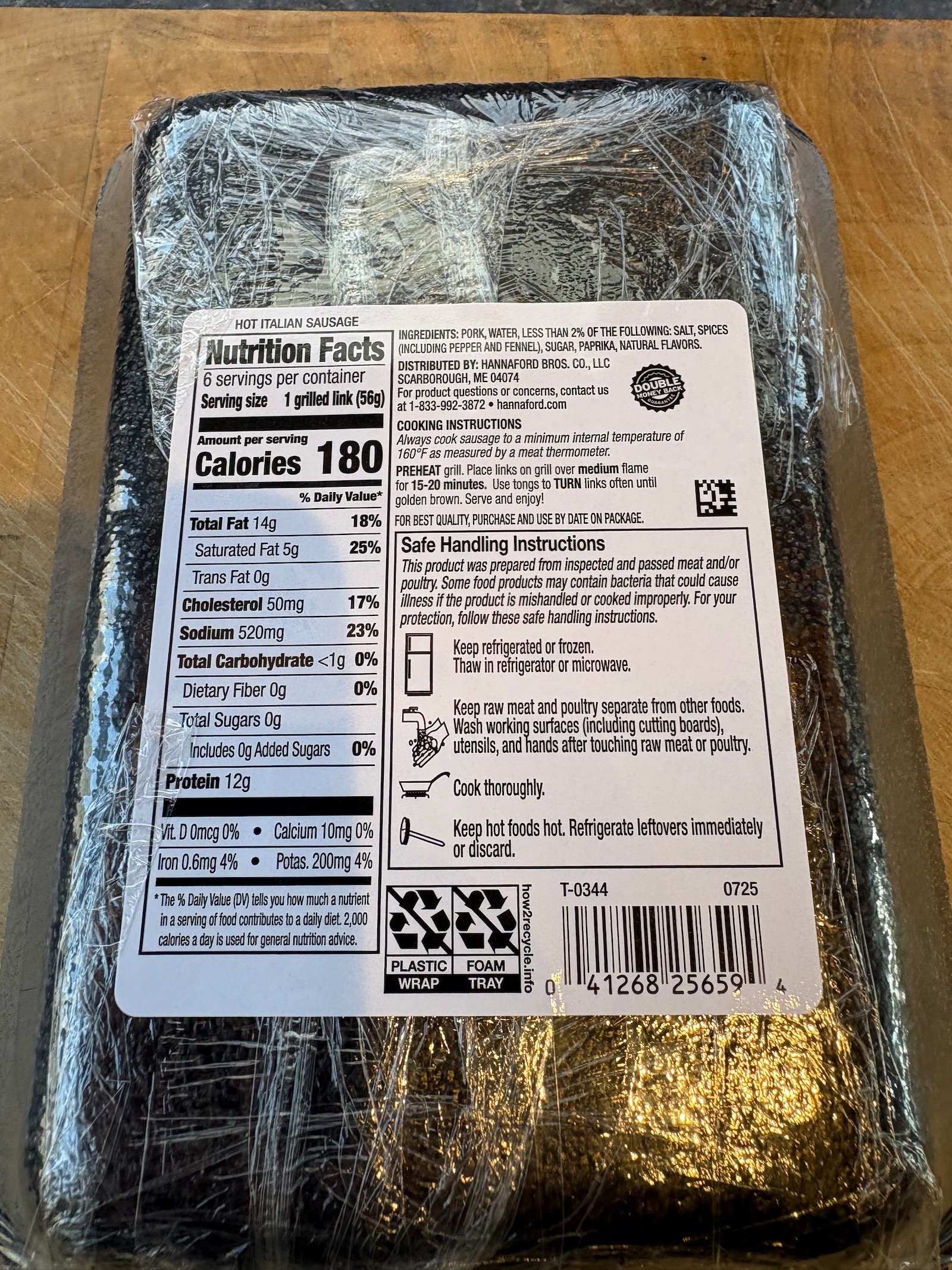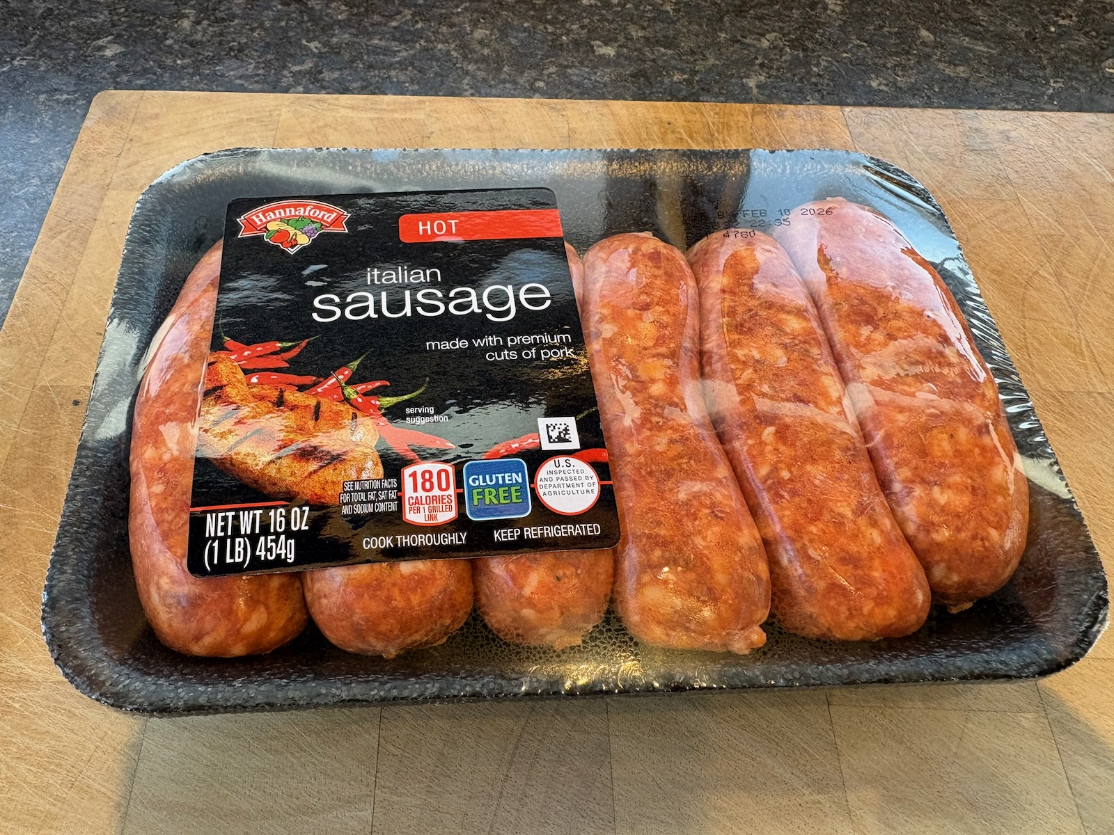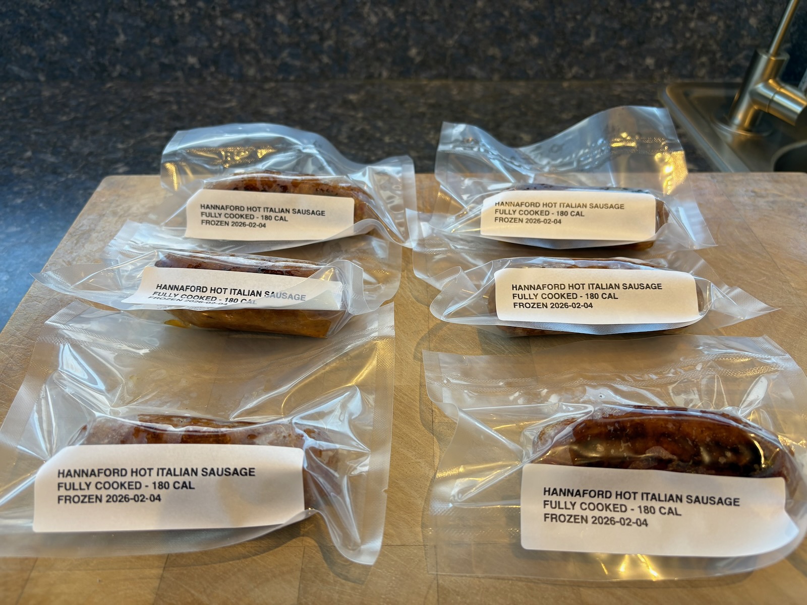 Cooked, vacuum sealed, and froze a package of hot Italian sausage.