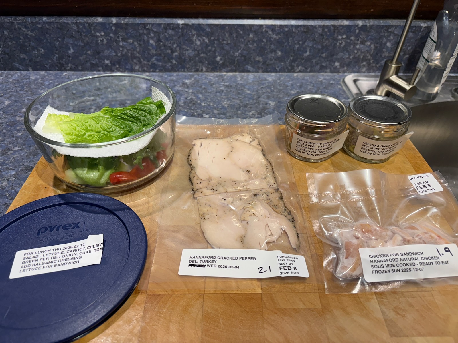 Prepped for lunch and dinner.
