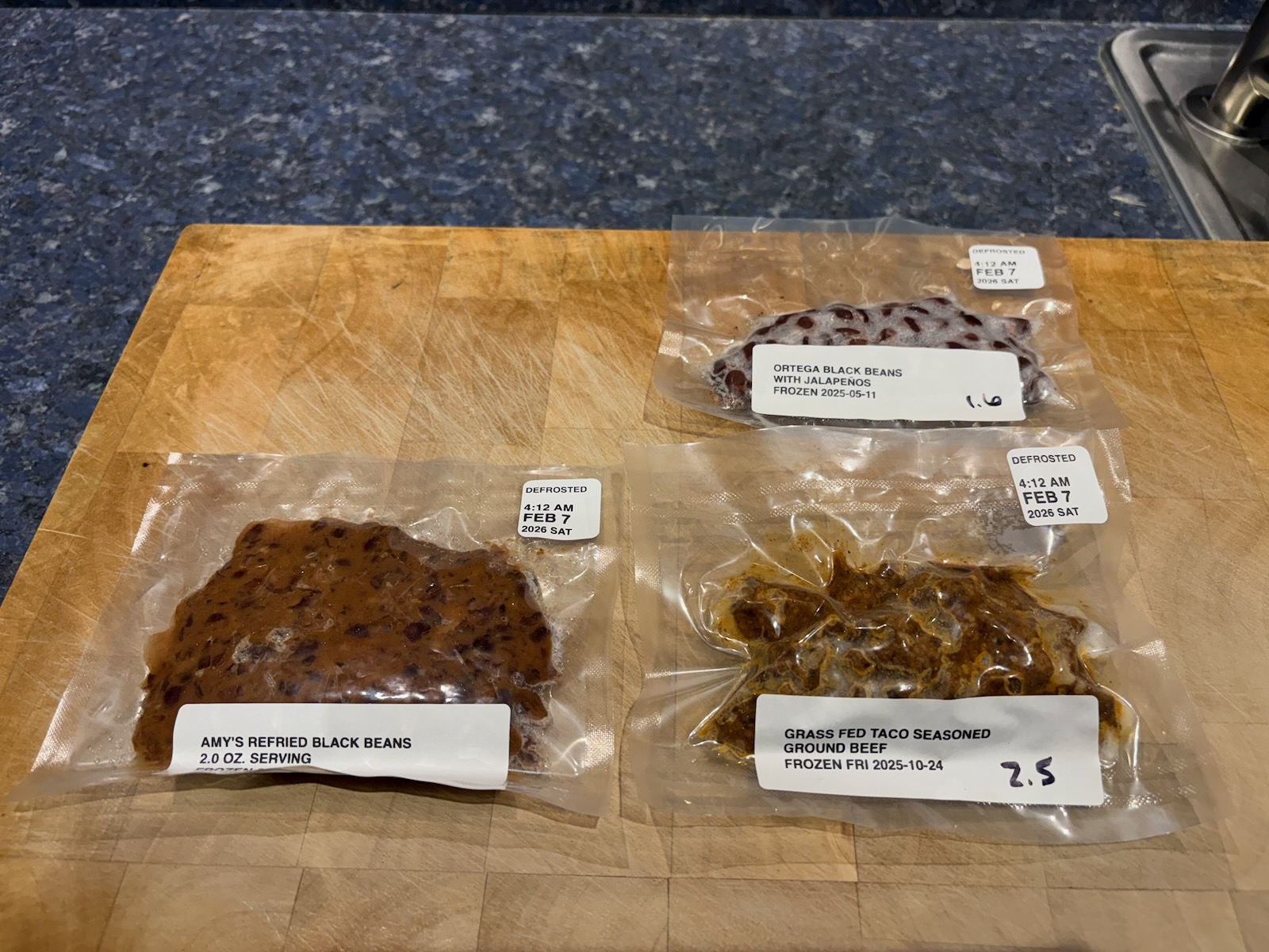 Defrosted taco seasoned beef and black beans for lunch tomorrow.