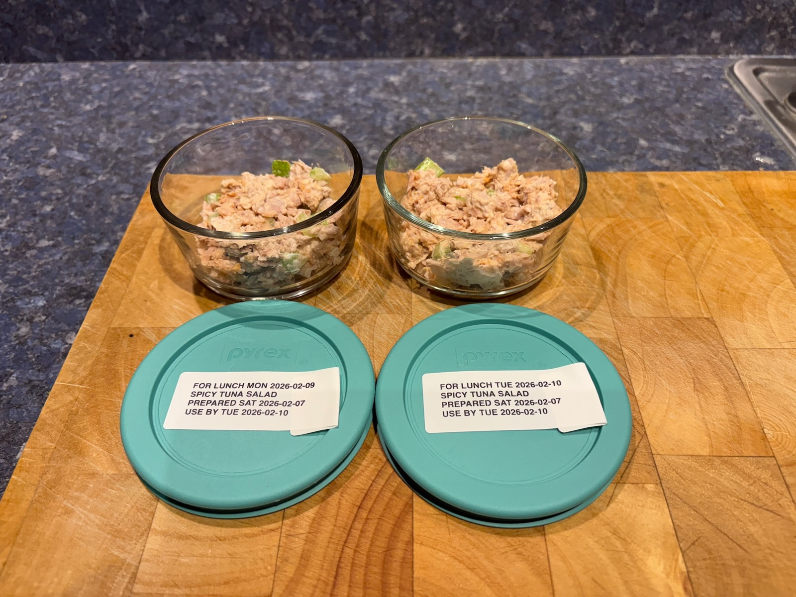 Prepped 2 servings of Spicy tuna salad sandwich.