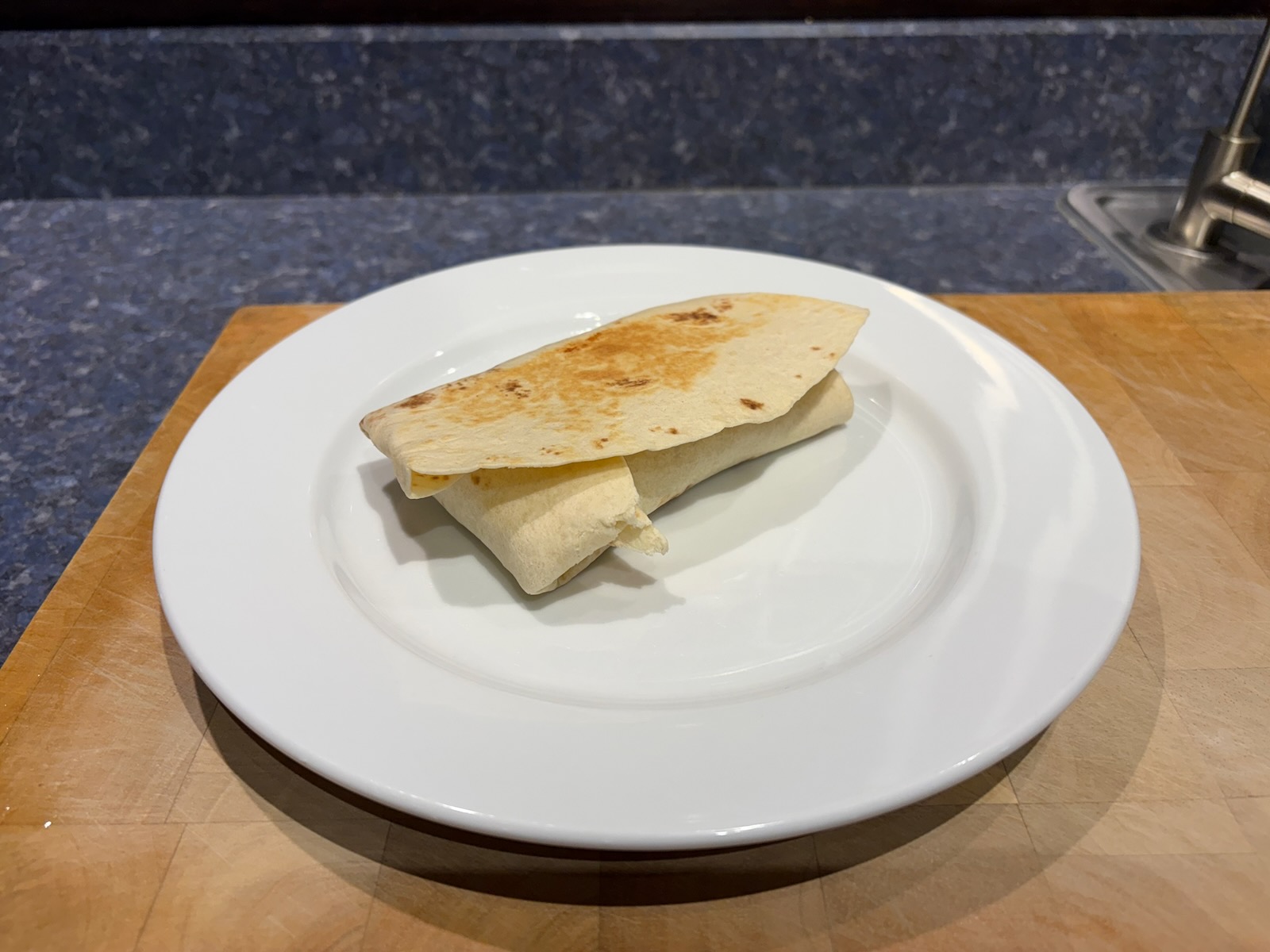 Breakfast: Refried black bean, egg, and cheese breakfast burrito #2.