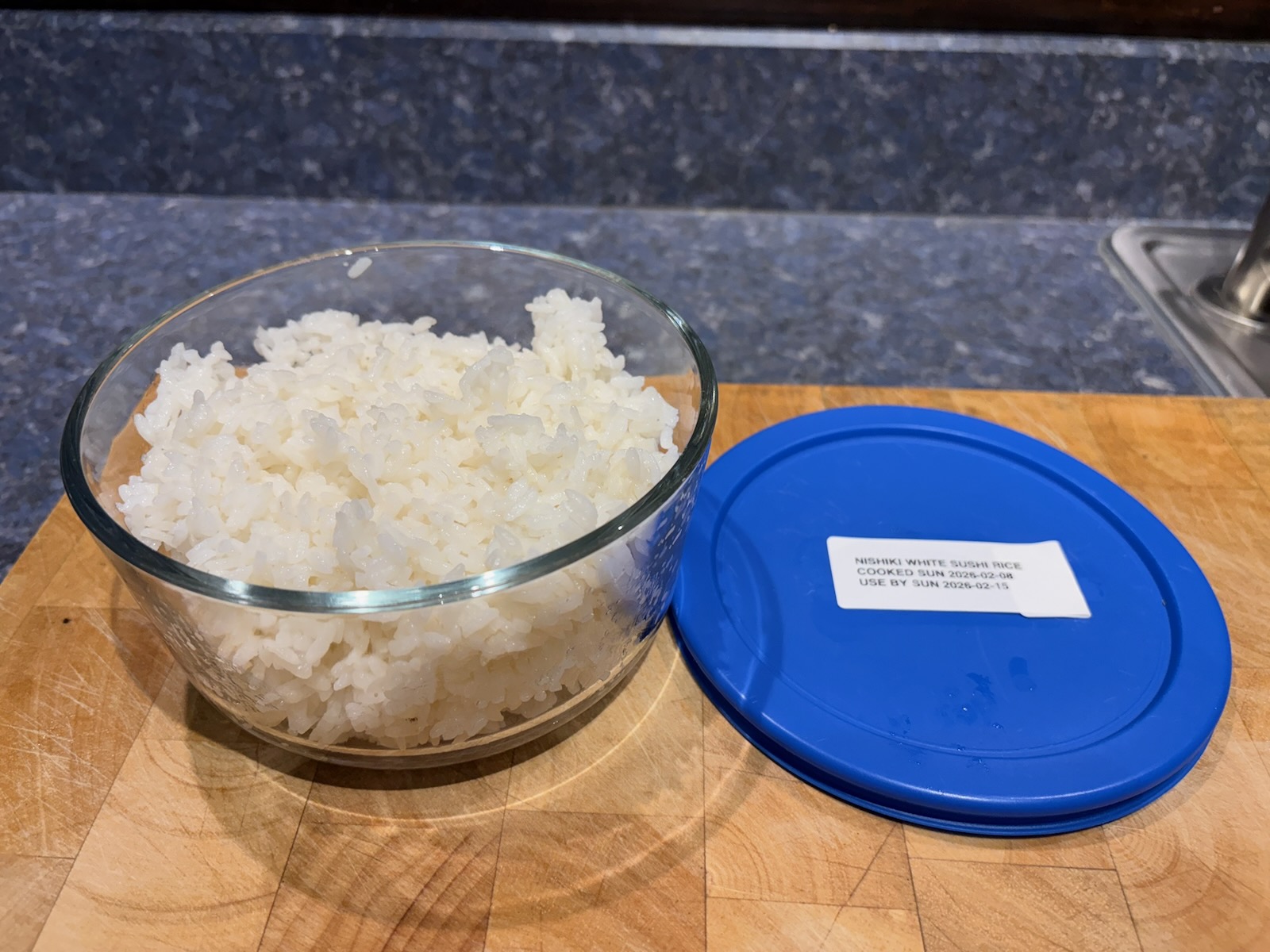 Cooked 1 1/2 cups of Nishiki white sushi rice and refrigerated for the week.