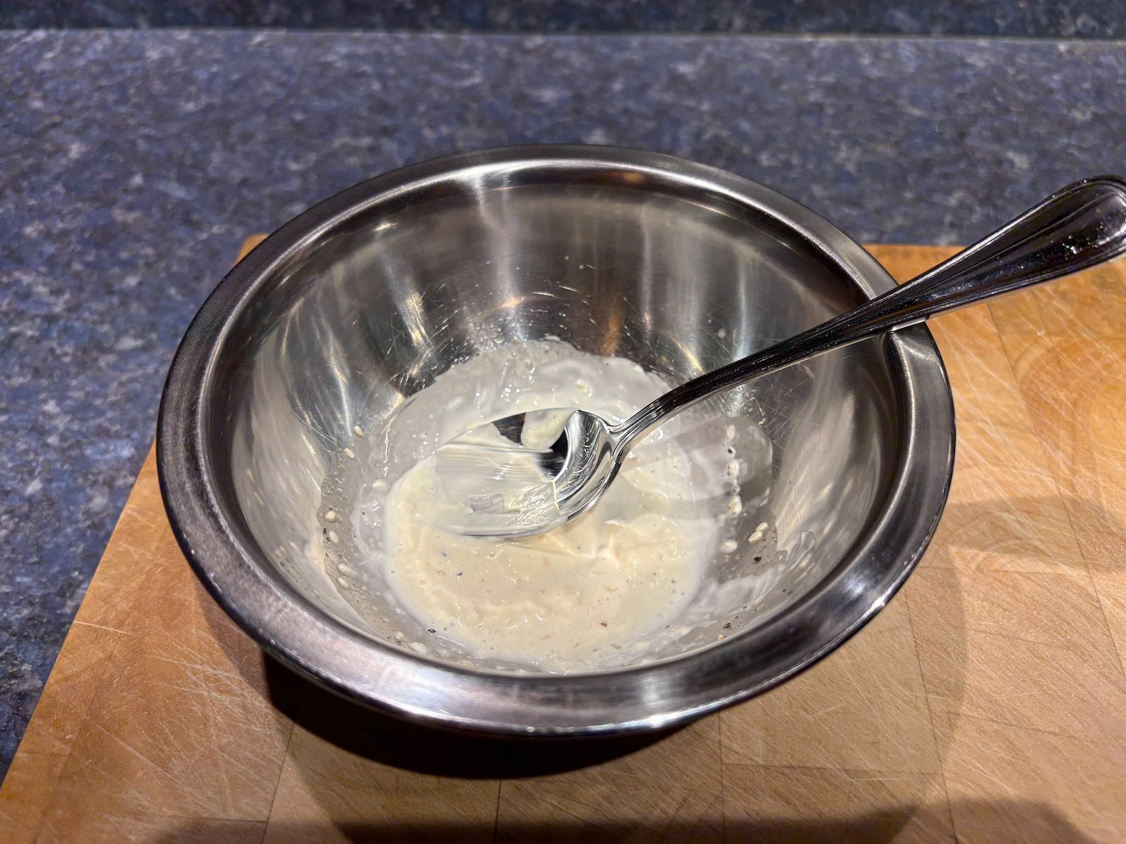 Made a dressing of vinegar, mayo, sesame seeds, salt, and black pepper.