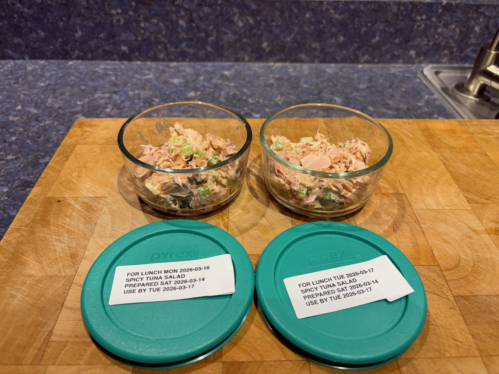 Prepped 2 servings of Spicy tuna salad sandwich.