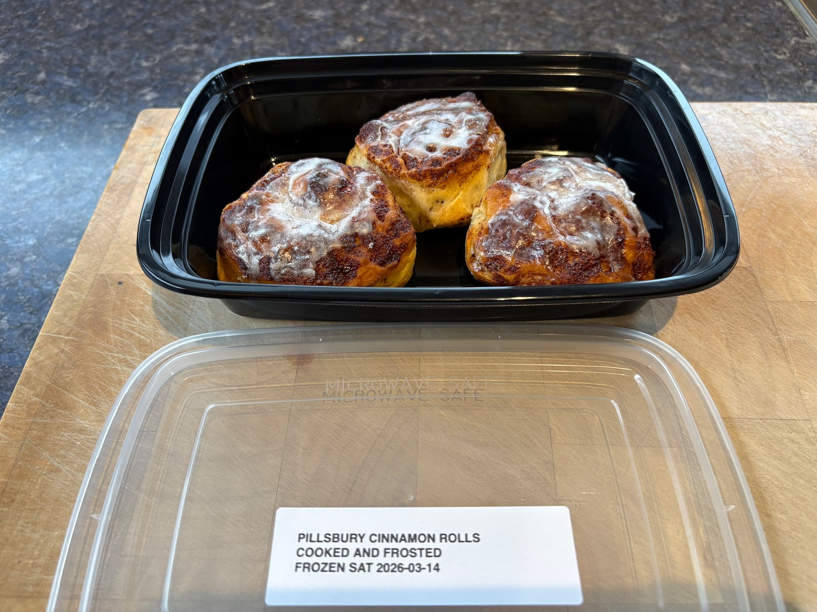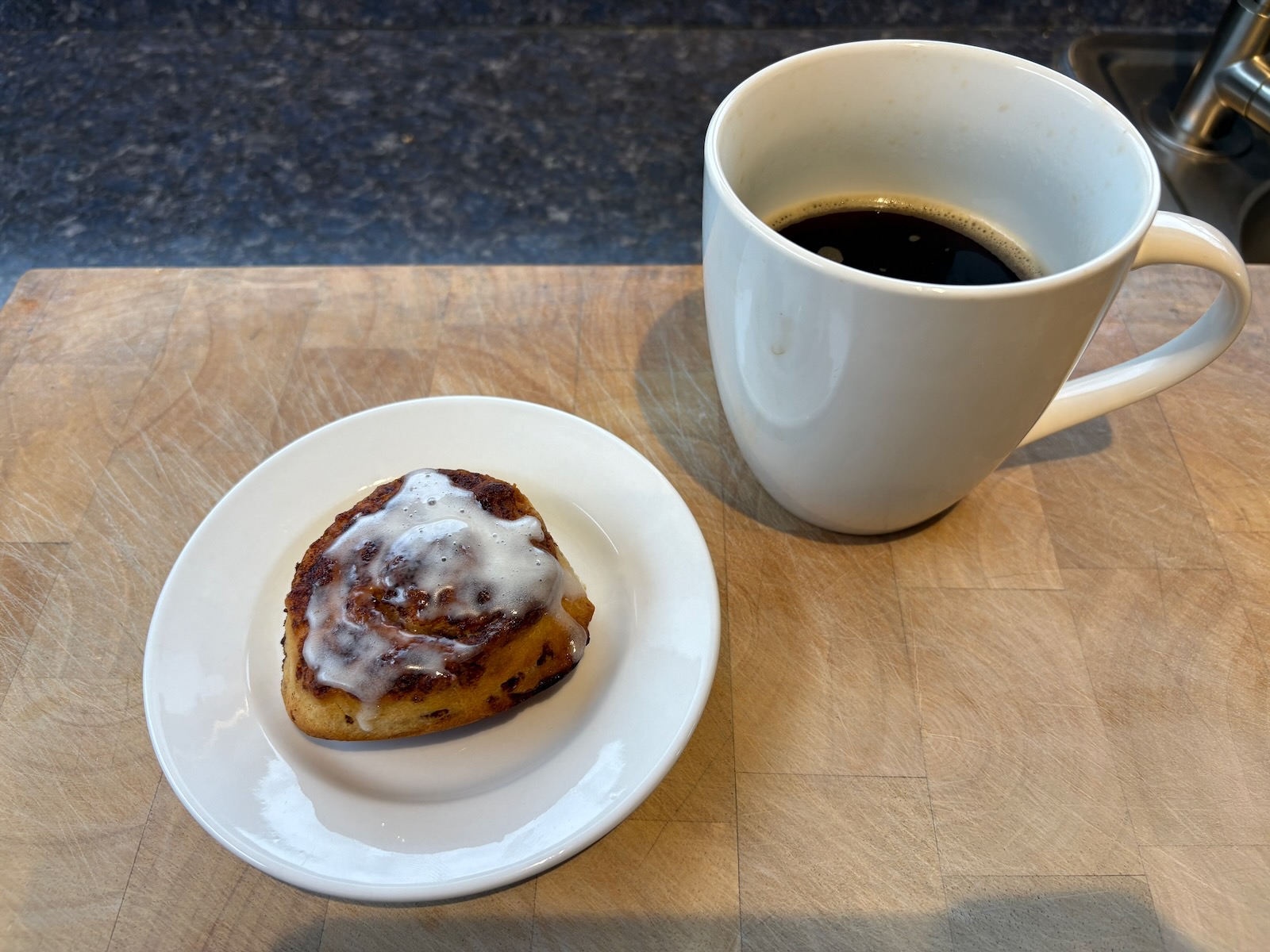 Snack: 2 Pillsbury cinnamon rolls and a coffee with Jameson.