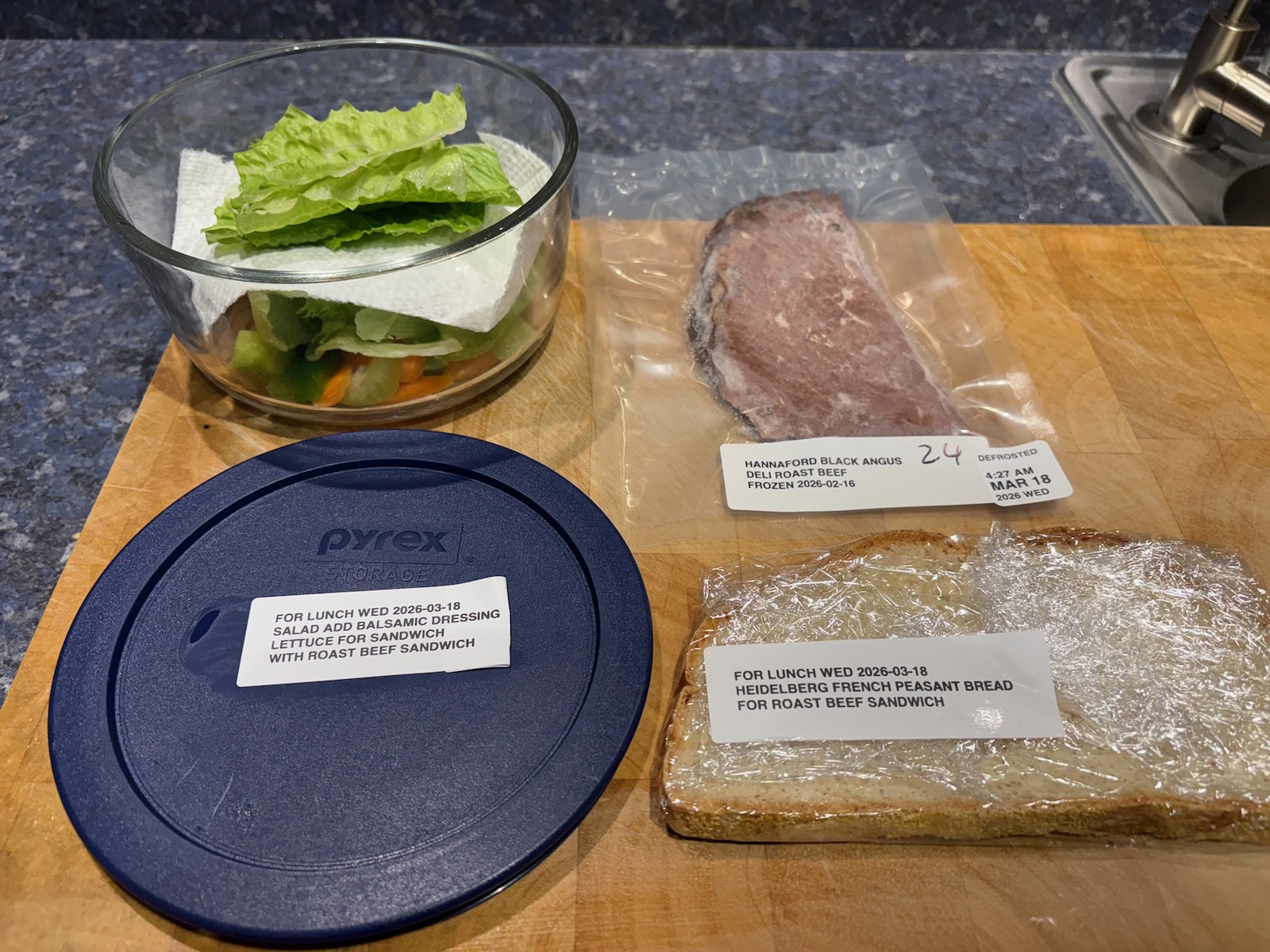 Prepped for lunch and dinner.