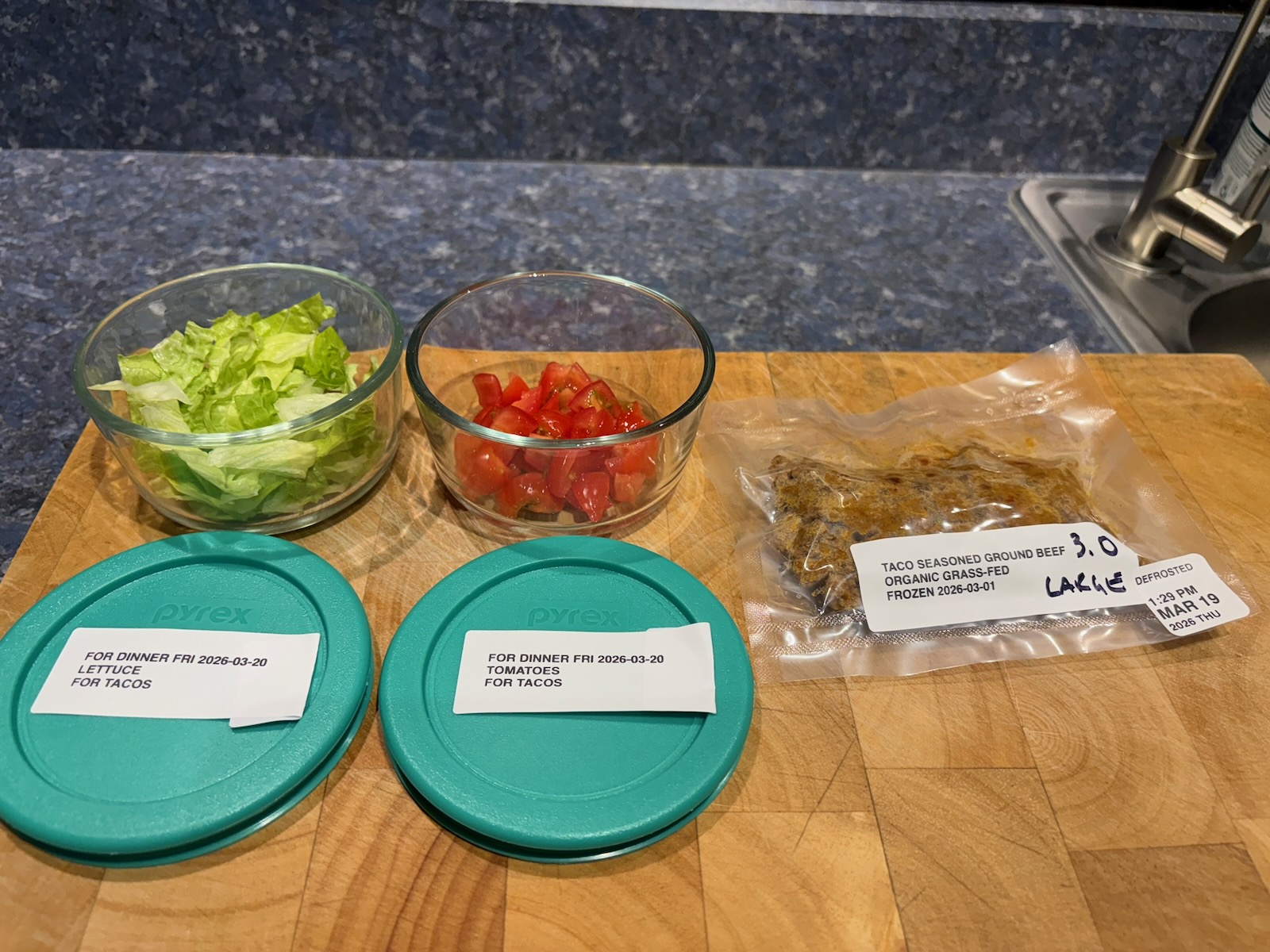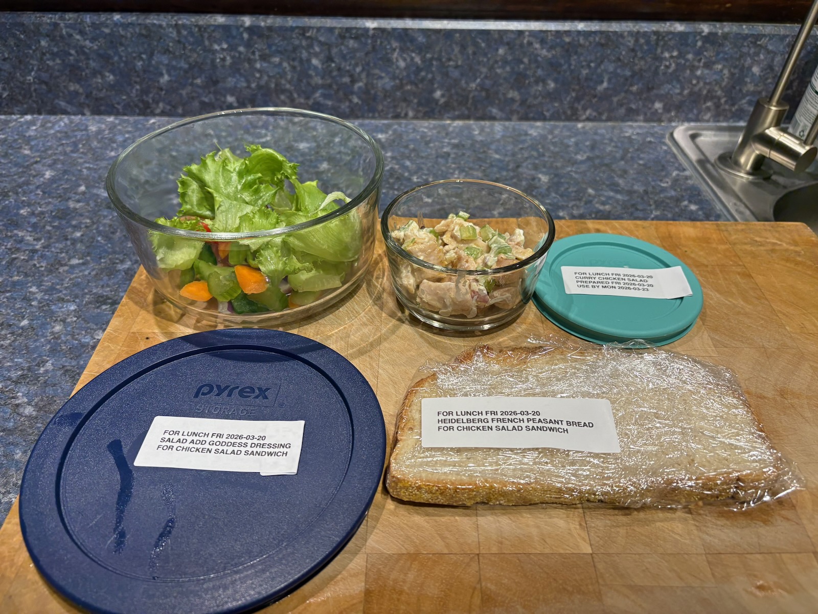 Prepped for lunch and dinner.