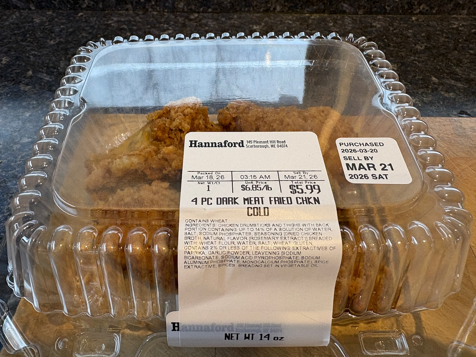 Vacuum sealed and froze 2 servings of deli fried chicken.