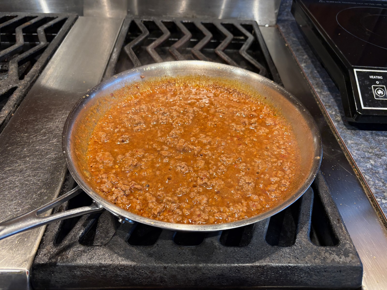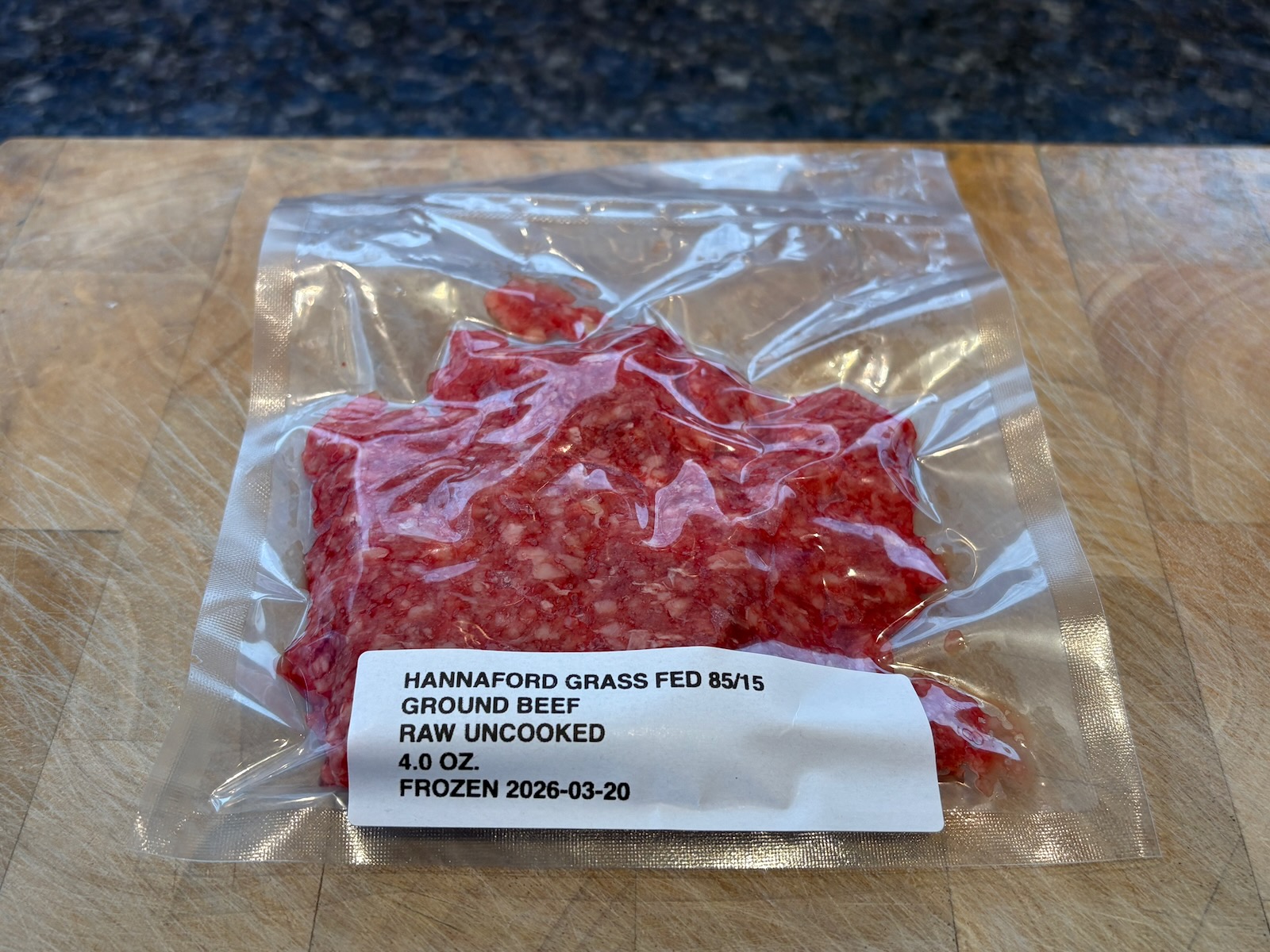 Prepared a batch of taco seasoned ground beef in larger packages for American-style beef tacos. From a 16 oz. package of grass-fed 85/15 ground beef, separated out 4 oz., vacuum sealed, and froze raw. Used the rest to make taco beef.