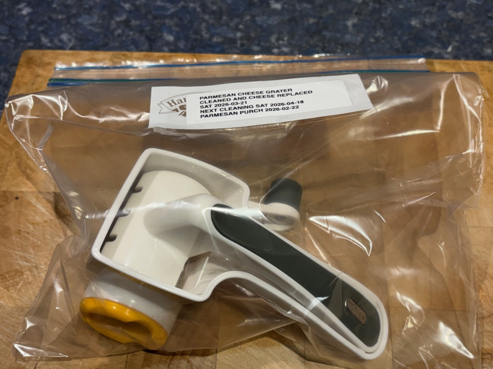 Cleaned the Parmesan grater and replaced the cheese.