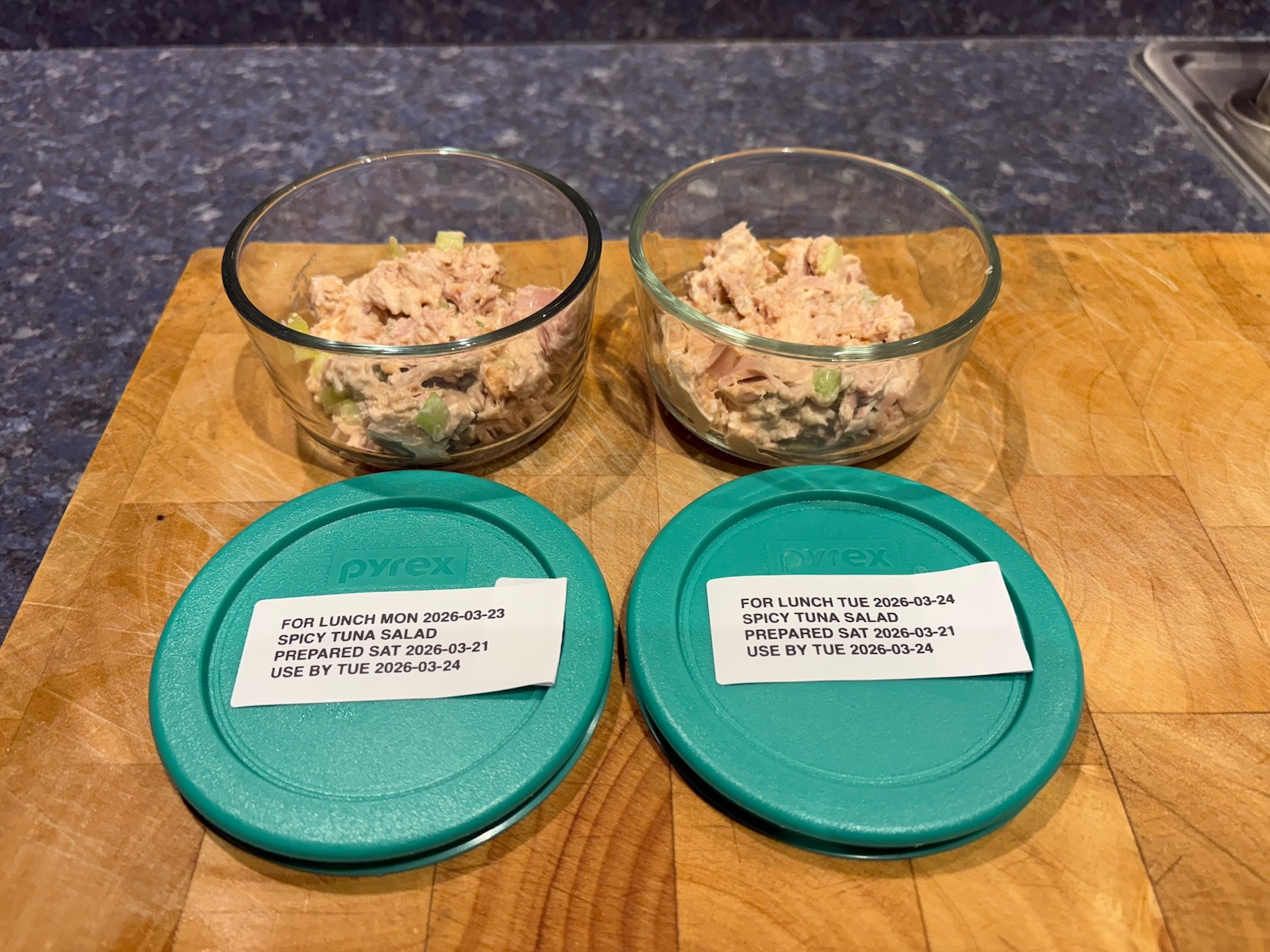 Prepped for lunch and dinner.
