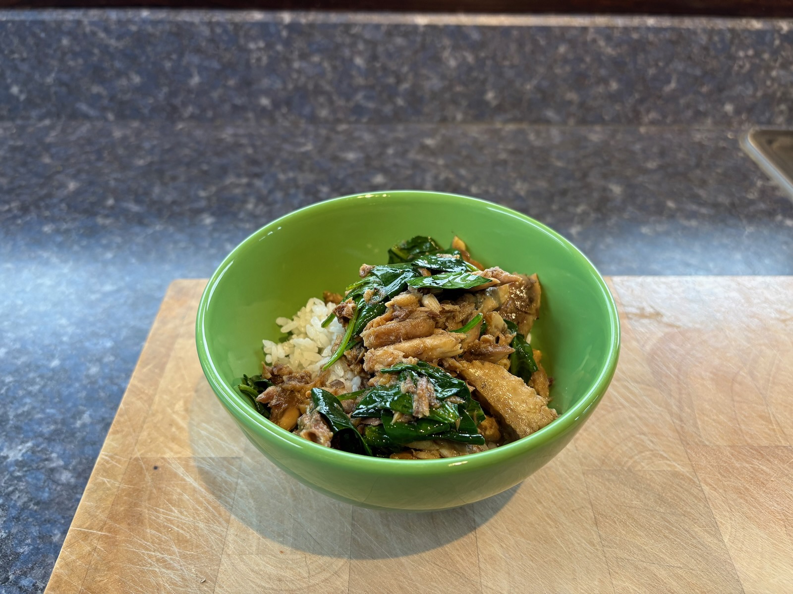Lunch: Mackerel and spinach rice bowl #2.